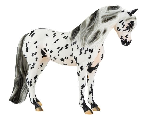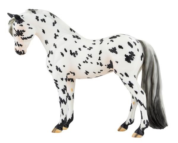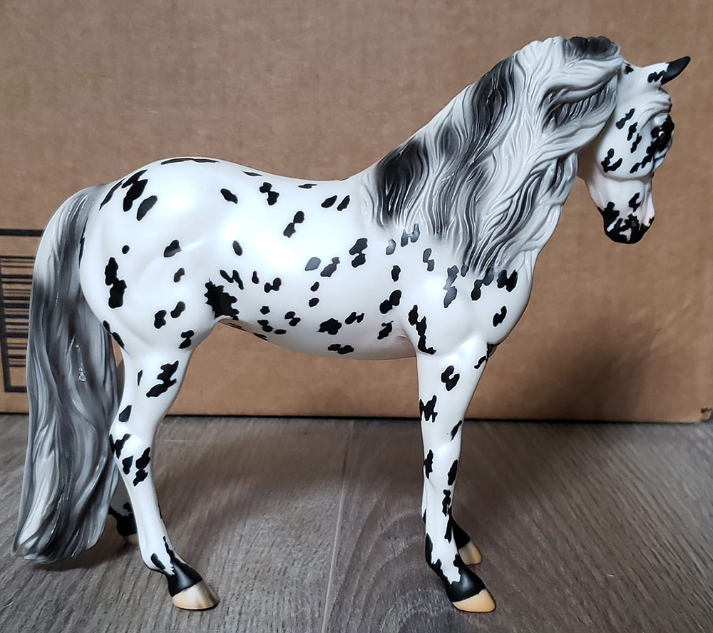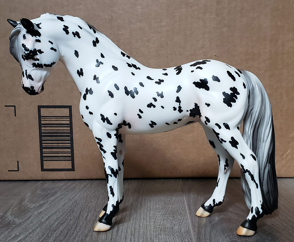 Matte black leopard appaloosa; detailed black spotting; pink shading; striped hooves; Berries Ponies SR; 1/350