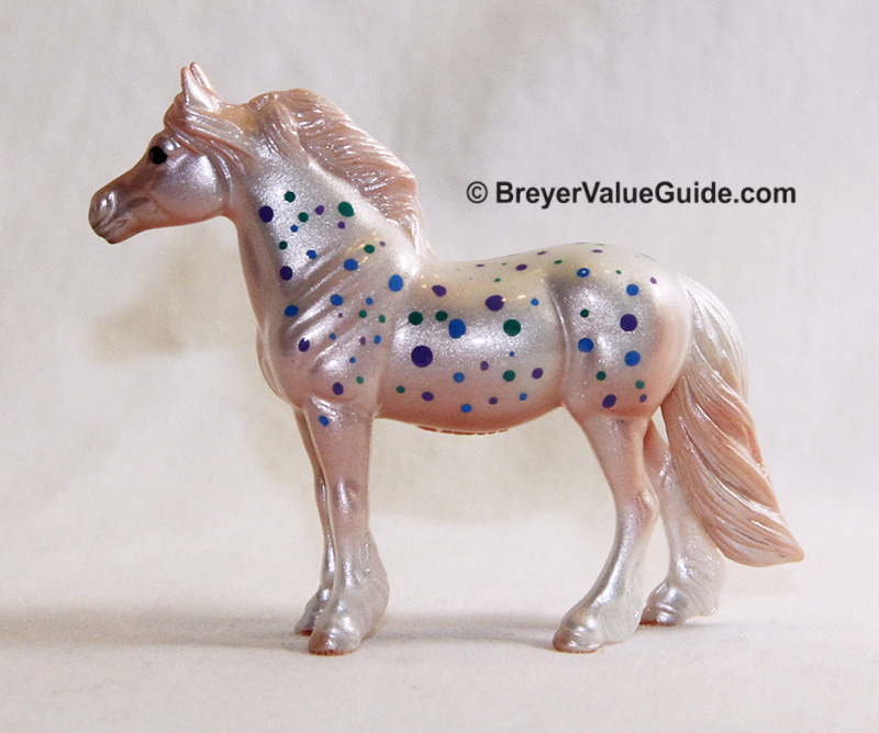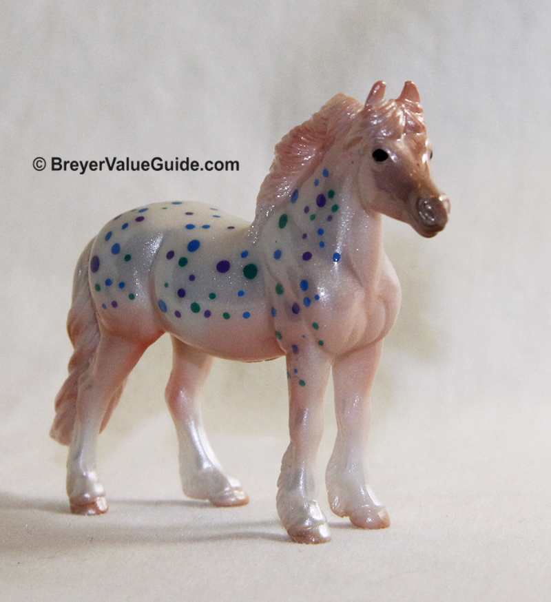 Glossy light pink with purple; green and blue spots; socks; included drawstring pouch; BreyerFest SR; 1/2000