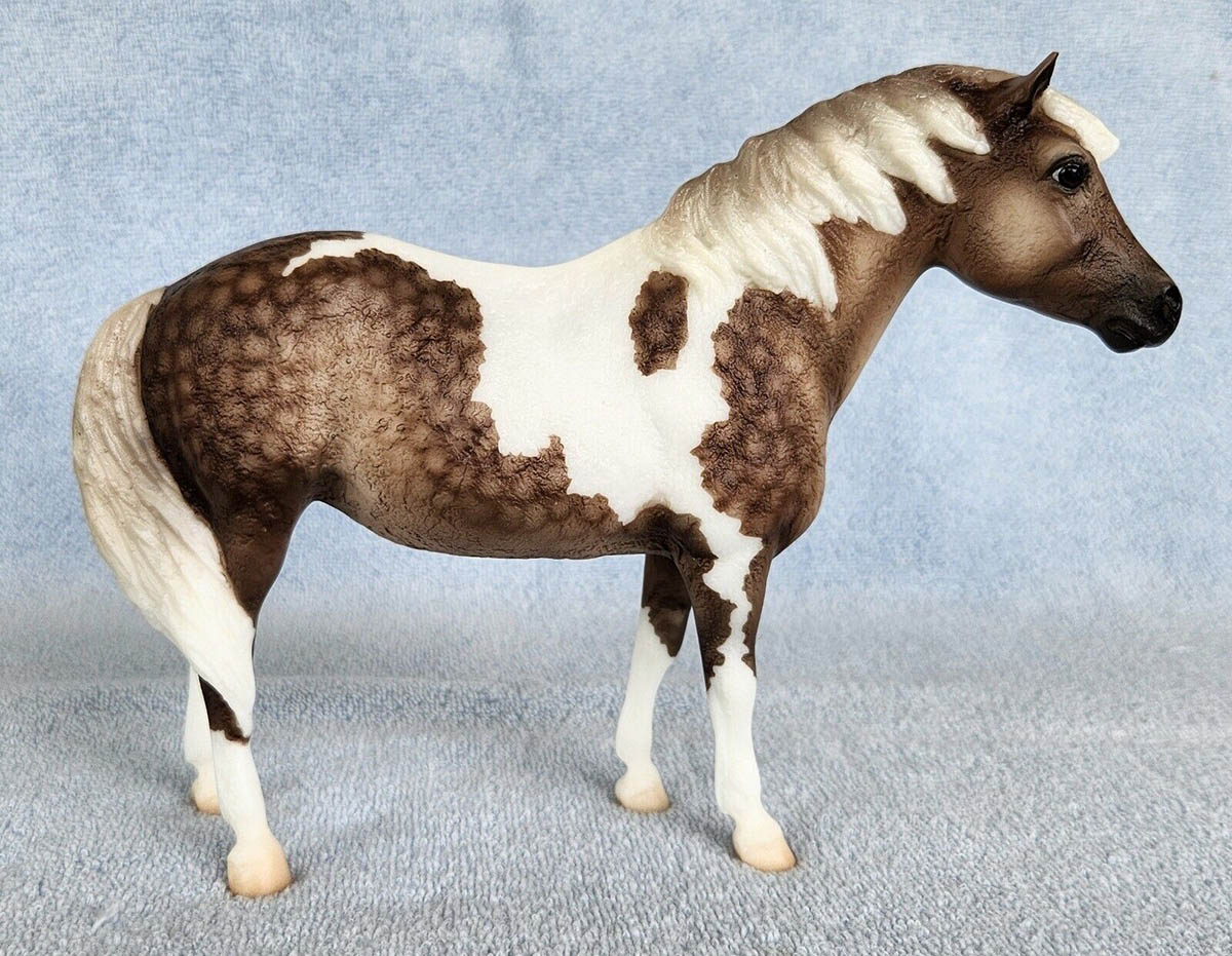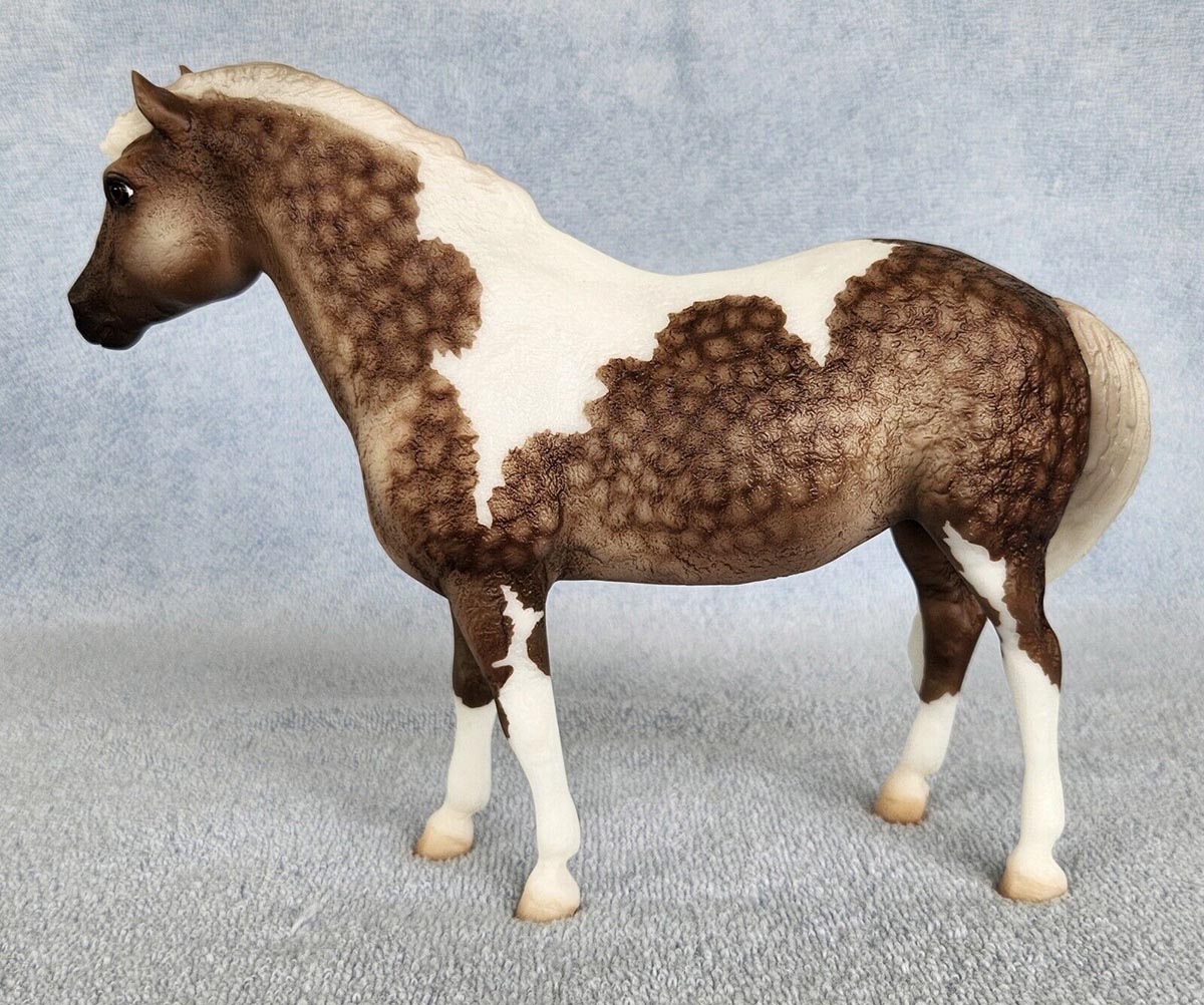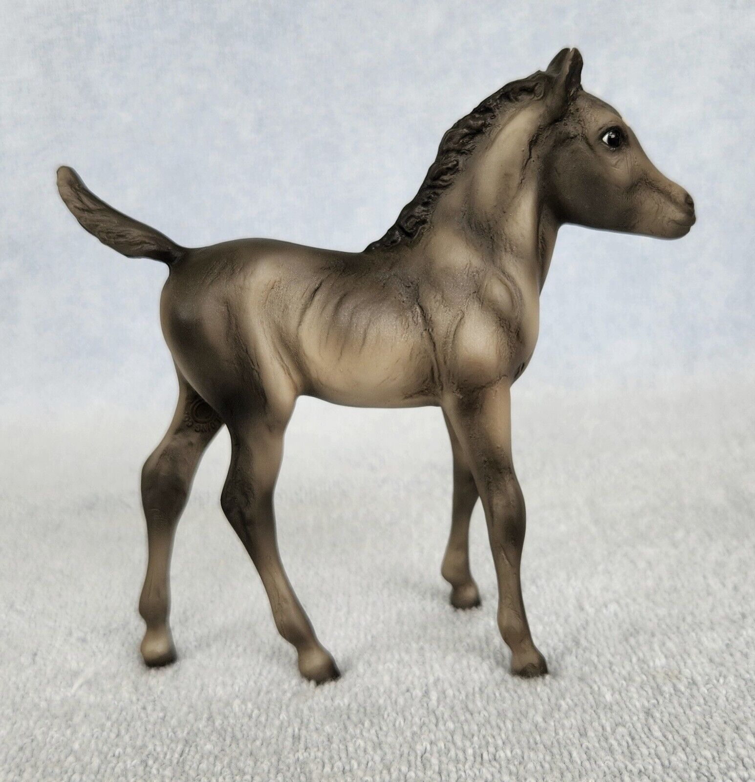 Mare: Matte shaded palomino pinto, dapples, large star, flaxen mane and tail, 4 stockings Foal: Matte shaded grey, large star, darker mane and tail Spokes and Spurs Event SR, 1/40 Issue price: $265 Valued as set.