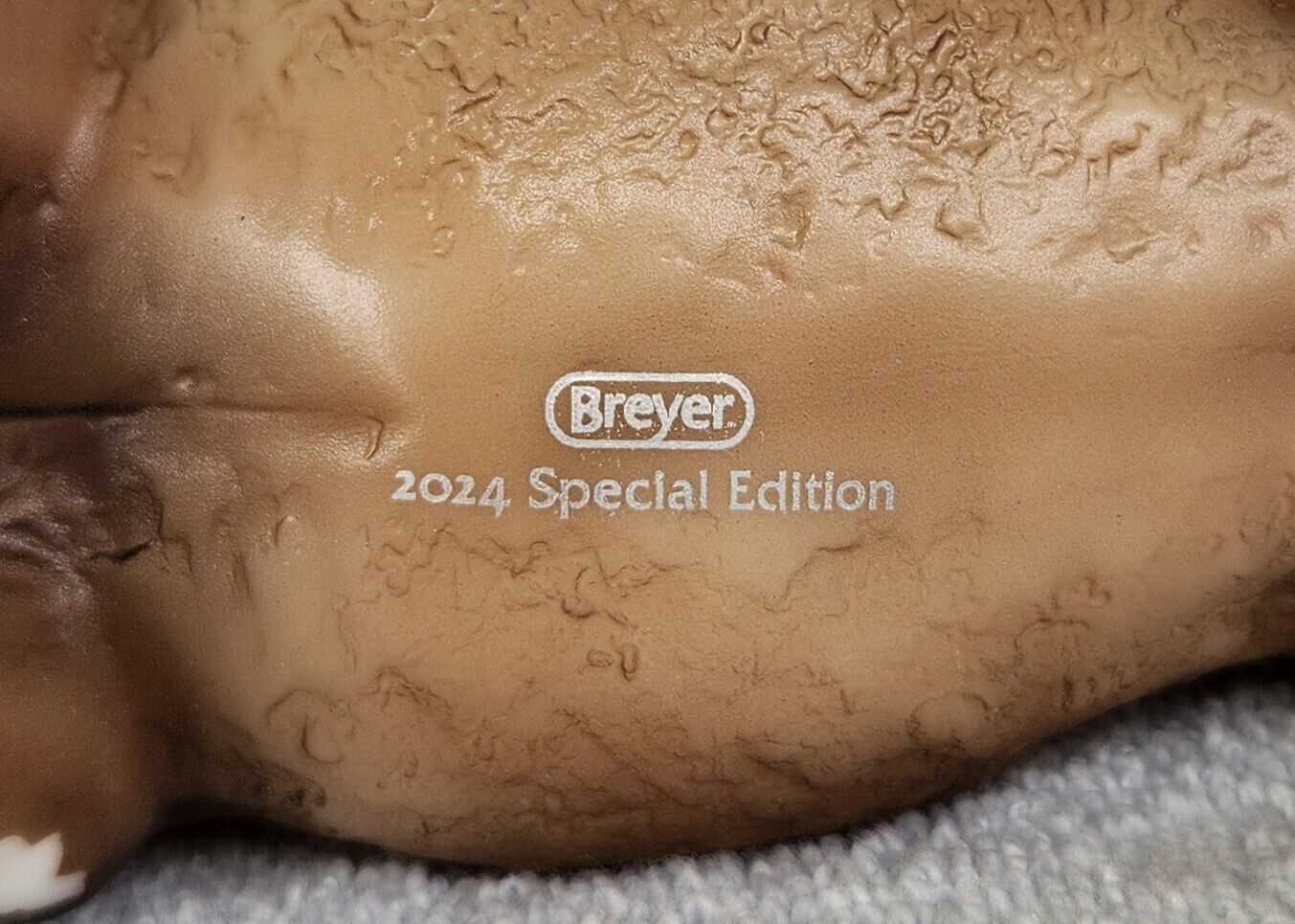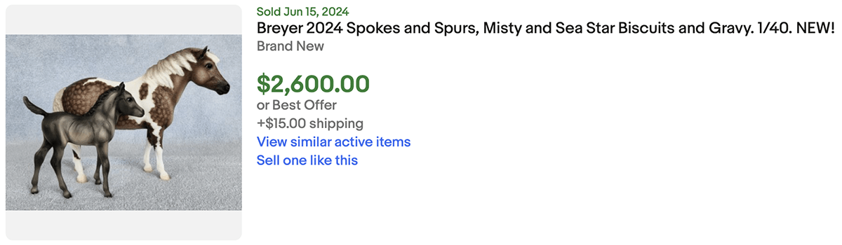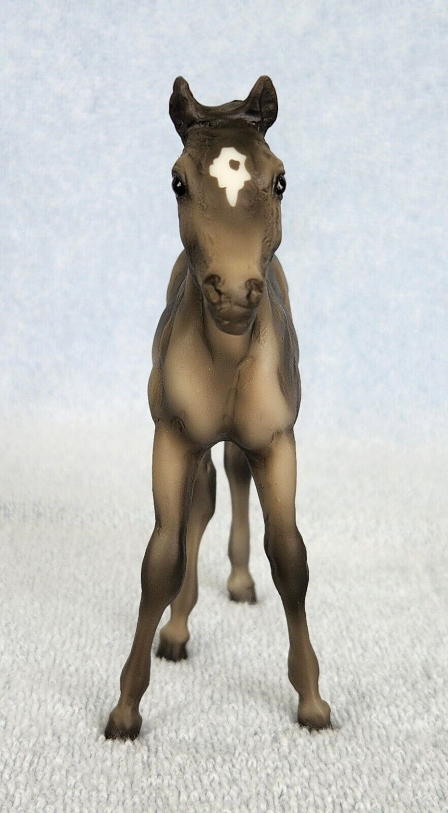 Mare: Matte shaded palomino pinto, dapples, large star, flaxen mane and tail, 4 stockings Foal: Matte shaded grey, large star, darker mane and tail Spokes and Spurs Event SR, 1/40 Issue price: $265 Valued as set.