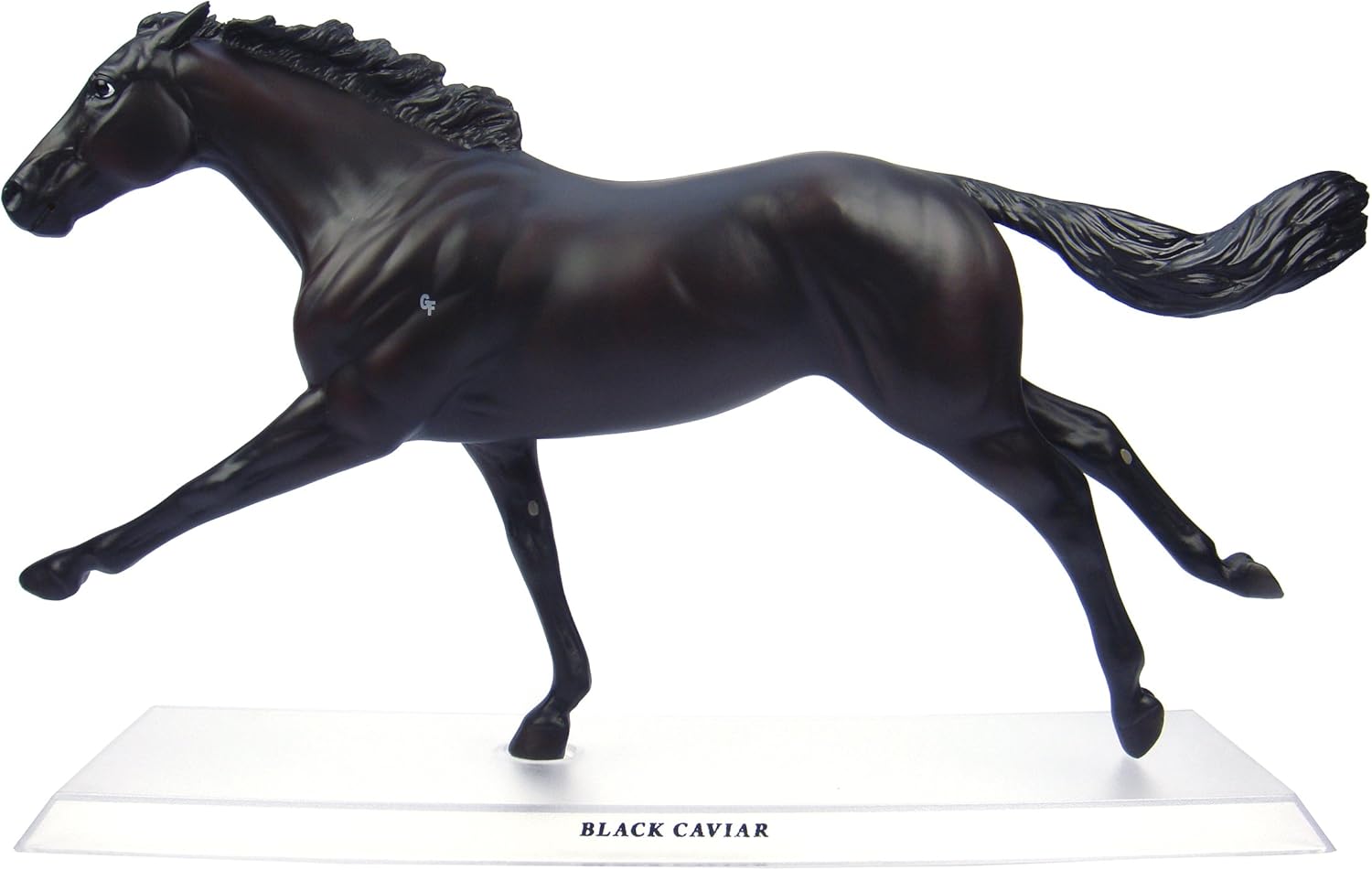 Matte mahogany bay; white shoulder brands on both sides; “Black Caviar” on clear base
