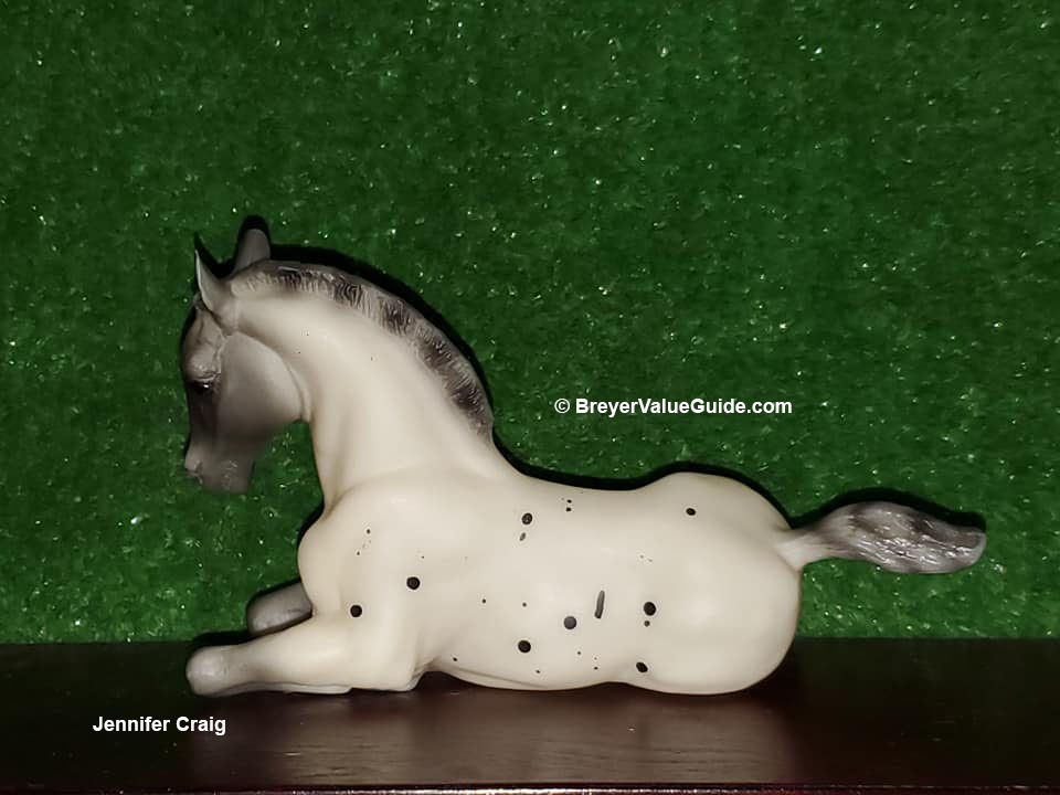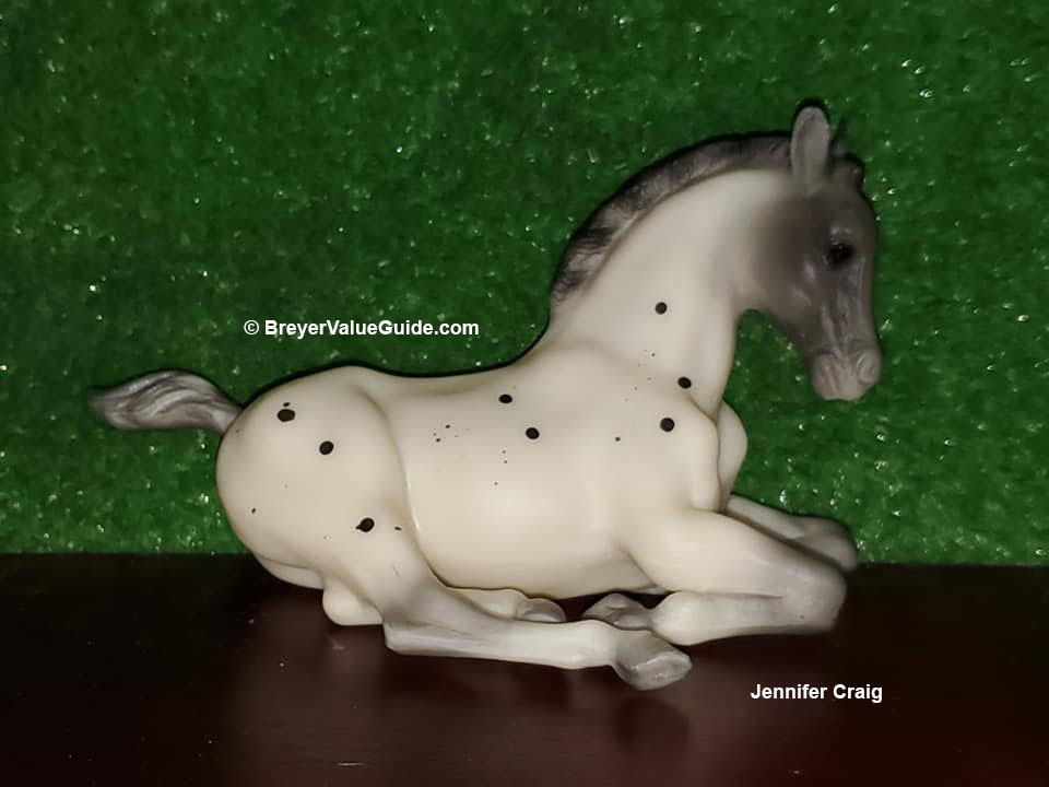 Matte blue roan leopard appaloosa; grey appaloosa “dots,” grey shaded face and points; striped mane – with Quarter Horse Yearling