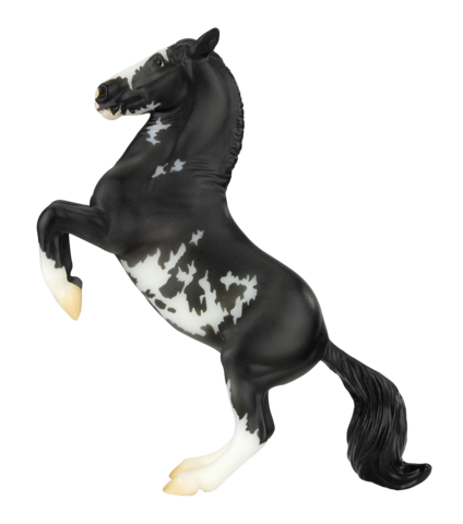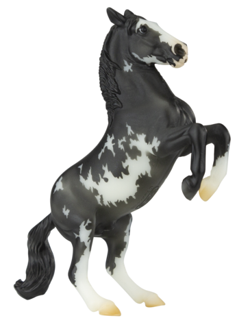 Matte shaded black pinto; detailed markings; wide blaze; 3 stockings; BreyerFest Prize SR