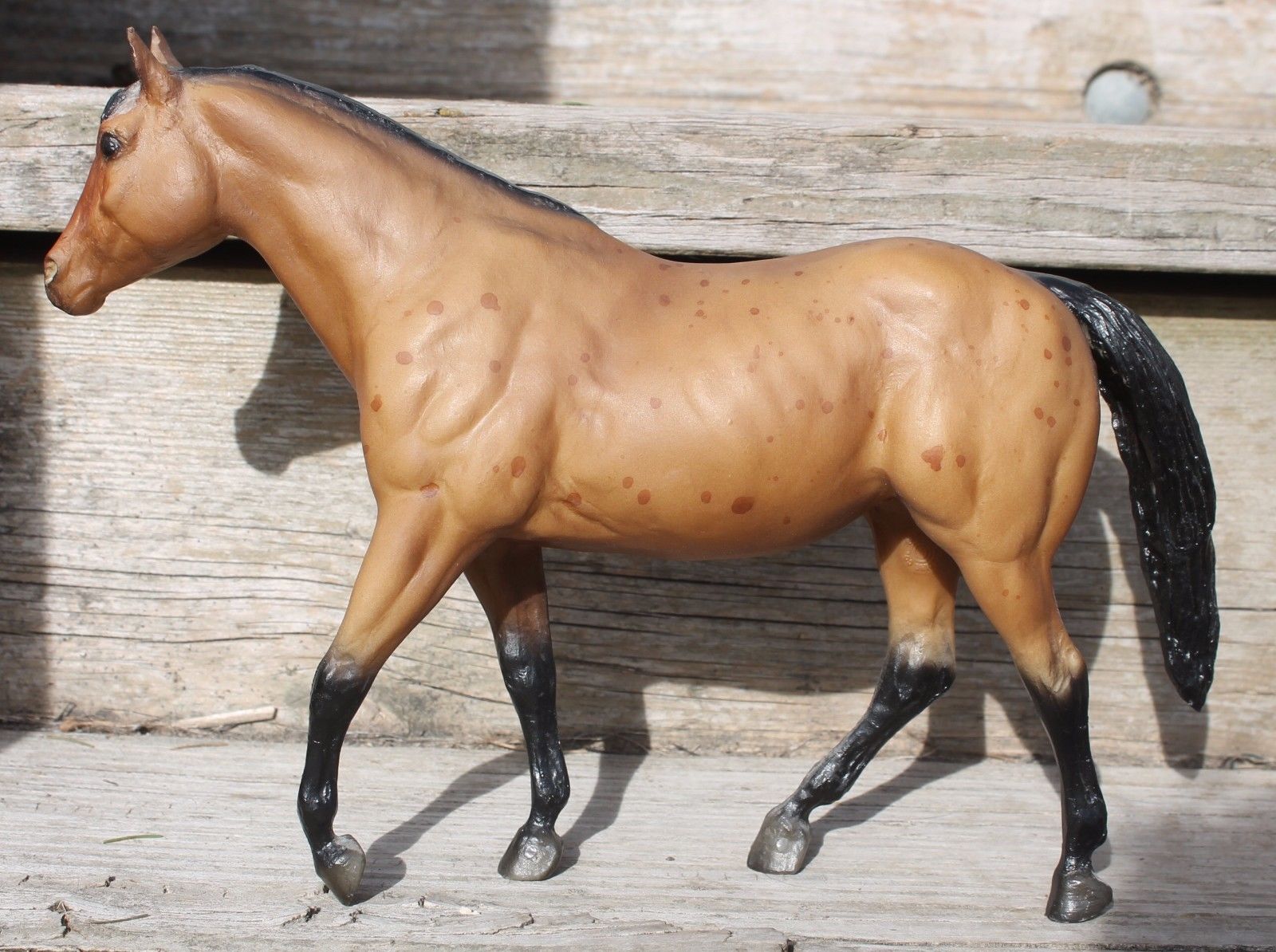 Matte bay roan peppercorn appaloosa; chestnut spots; diamond star; black points; JCPenney SR – with Action Stock Horse Foal; Stock Horse Stallion
