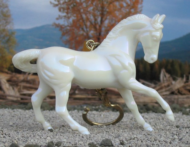 Glossy pearlescent white; keychain; BreyerFest SR; 1/2000