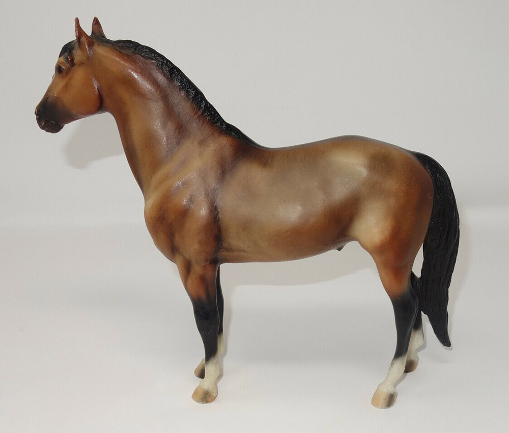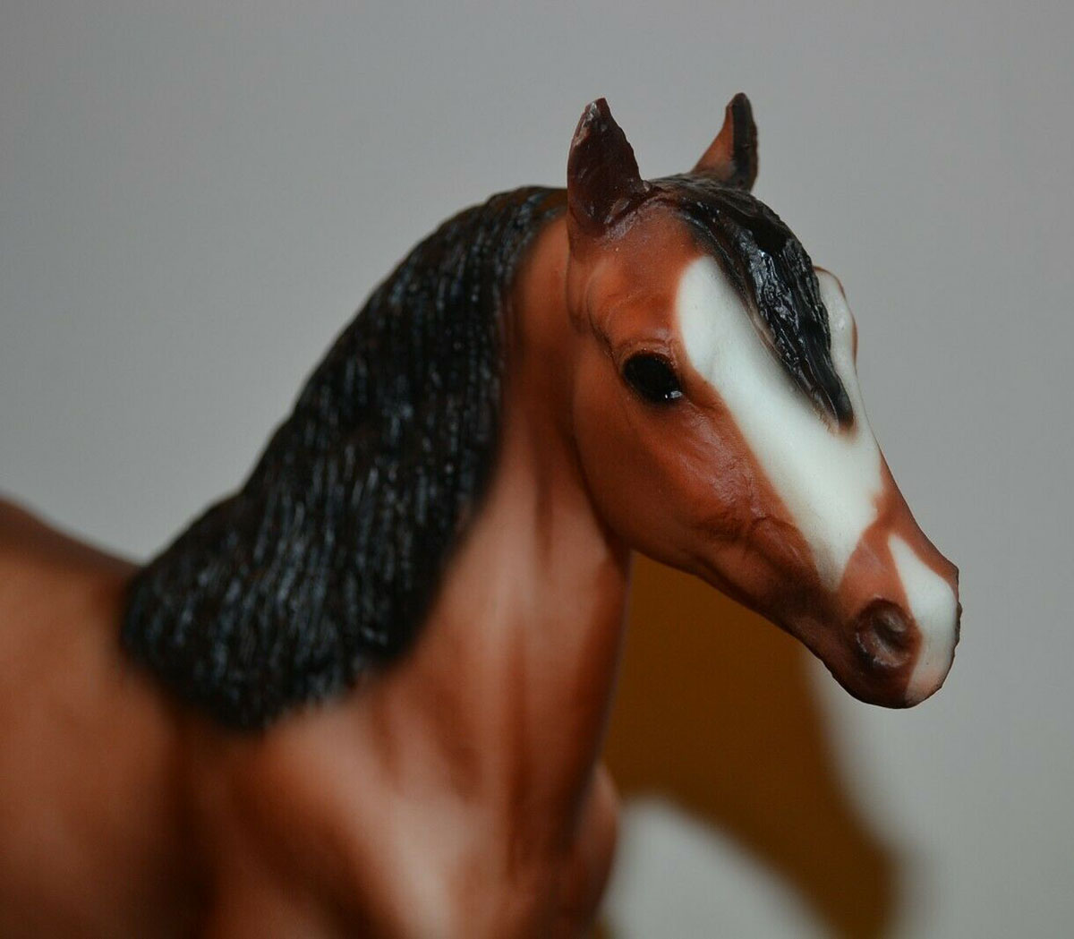 Matte bay; wide blaze; snip; dorsal stripe; 4 socks; striped hooves; ToysR Us Medallion Series SR