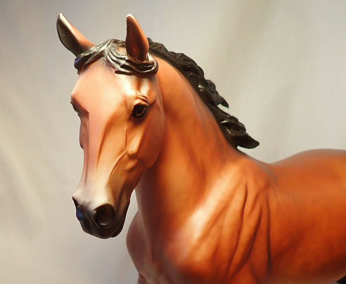 Matte bay, dapples, solid face, detailed eyes, orange tail ribbon, Collector Club SR