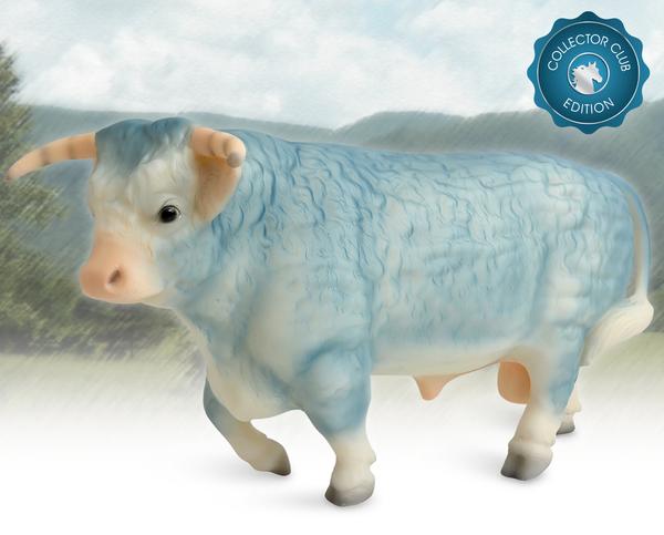 Matte wedgewood blue, white face, belly and lower legs, striped horns, grey hooves, Collector Club Web SR, 1/58