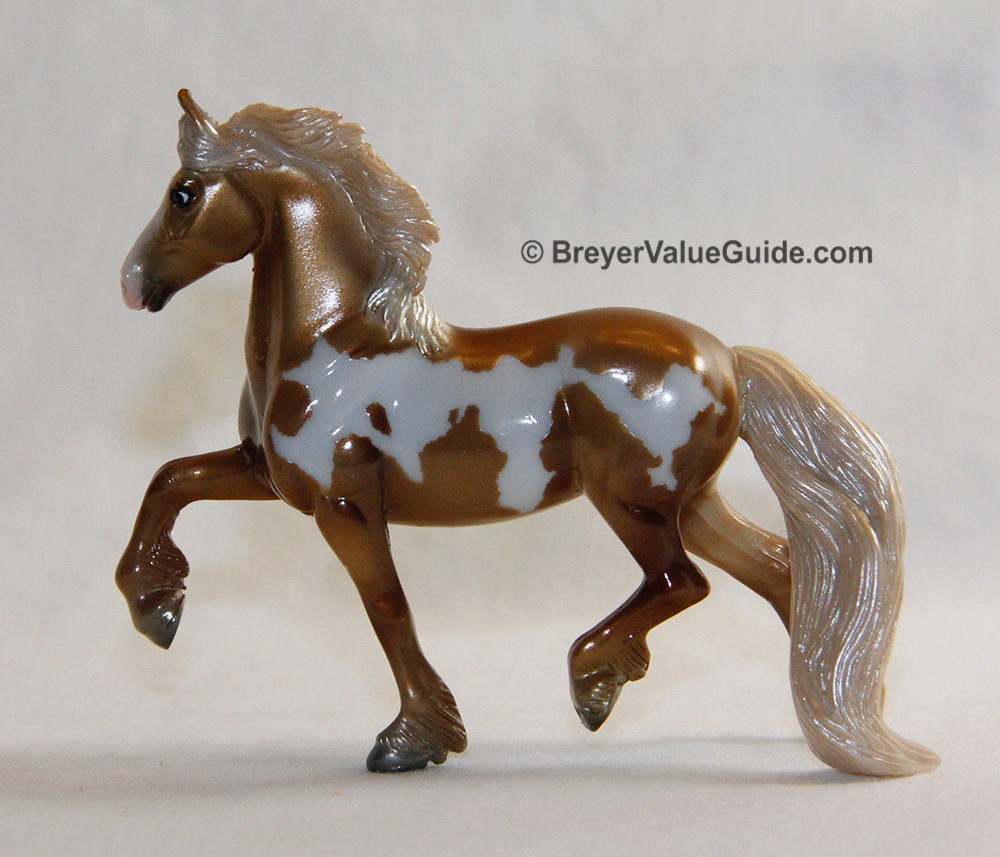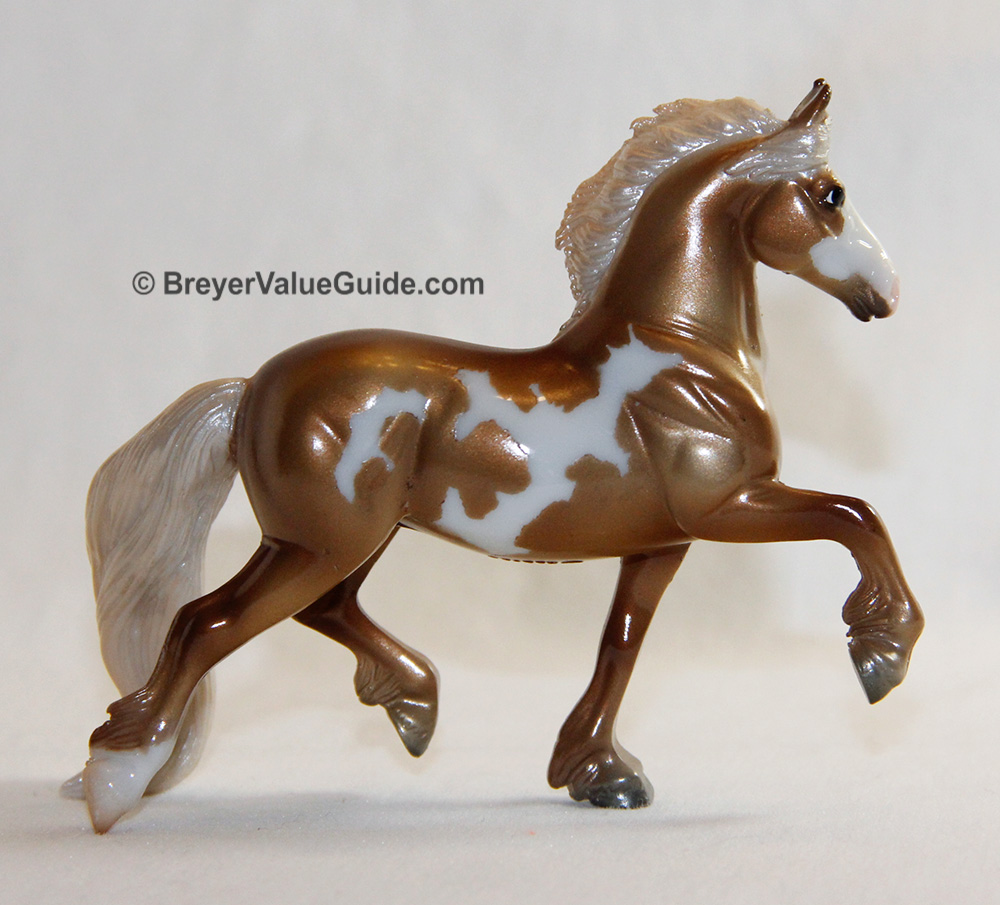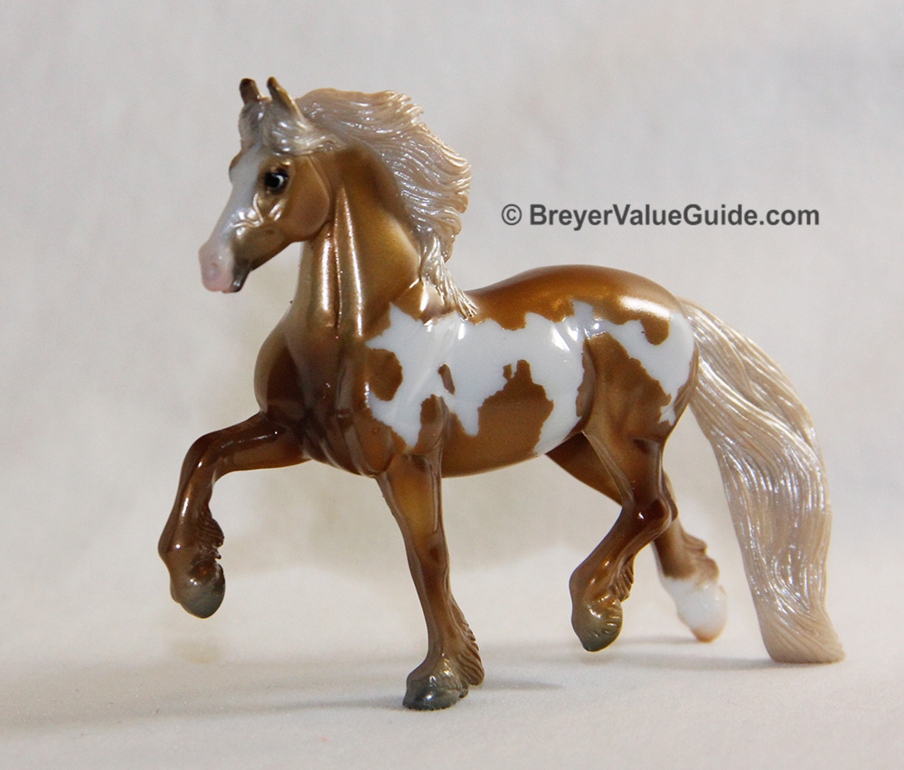 Glossy golden palomino pinto; stenciled apron face; 1 hind sock; BreyerFest SR; 1/1000