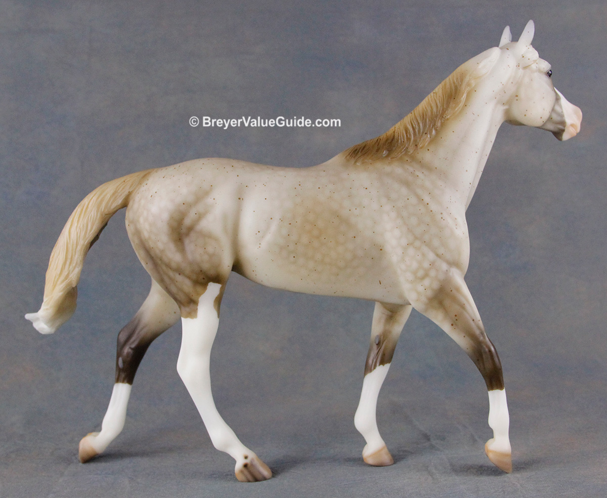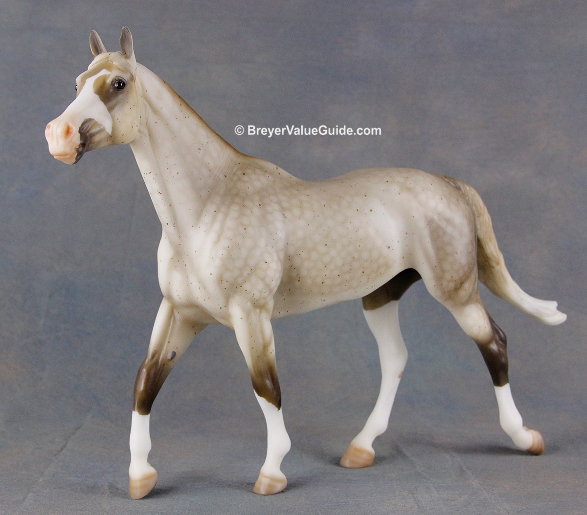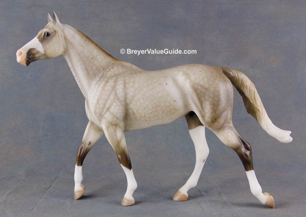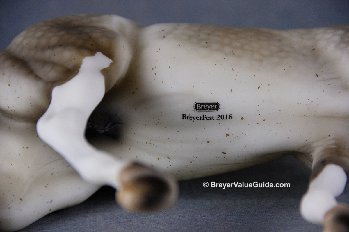 Matte dappled rose grey; fleabites; irregular blaze; 4 socks; “BreyerFest 2016” stamp; BreyerFest Volunteer SR; 1/163