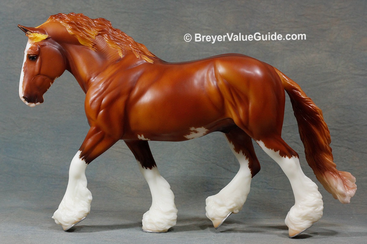 Matte red chestnut, sabino pinto, wide blaze that goes over muzzle and under chin, pinto markings on belly, 4 stockings, “Cardinal 2022” on belly, Birds of a Feather Series SR, 1/500