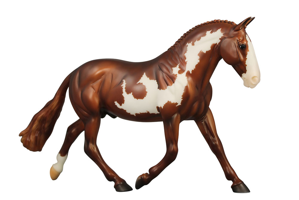 Matte dark chestnut pinto; apron face; 1 hind sock; BreyerFest prize SR; 1/10