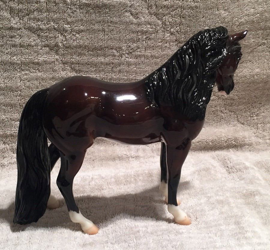 Glossy bay; wide blaze; 4 socks; BreyerFest Prize SR; 1/28