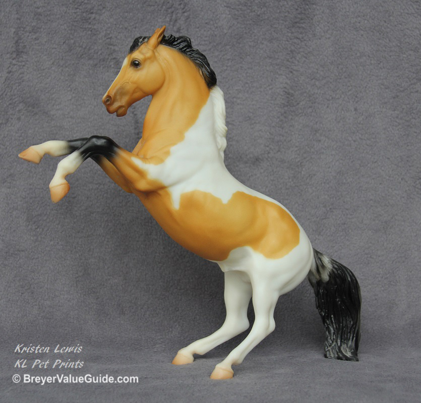 Matte buckskin pinto; blaze; 2 front socks, white hind legs