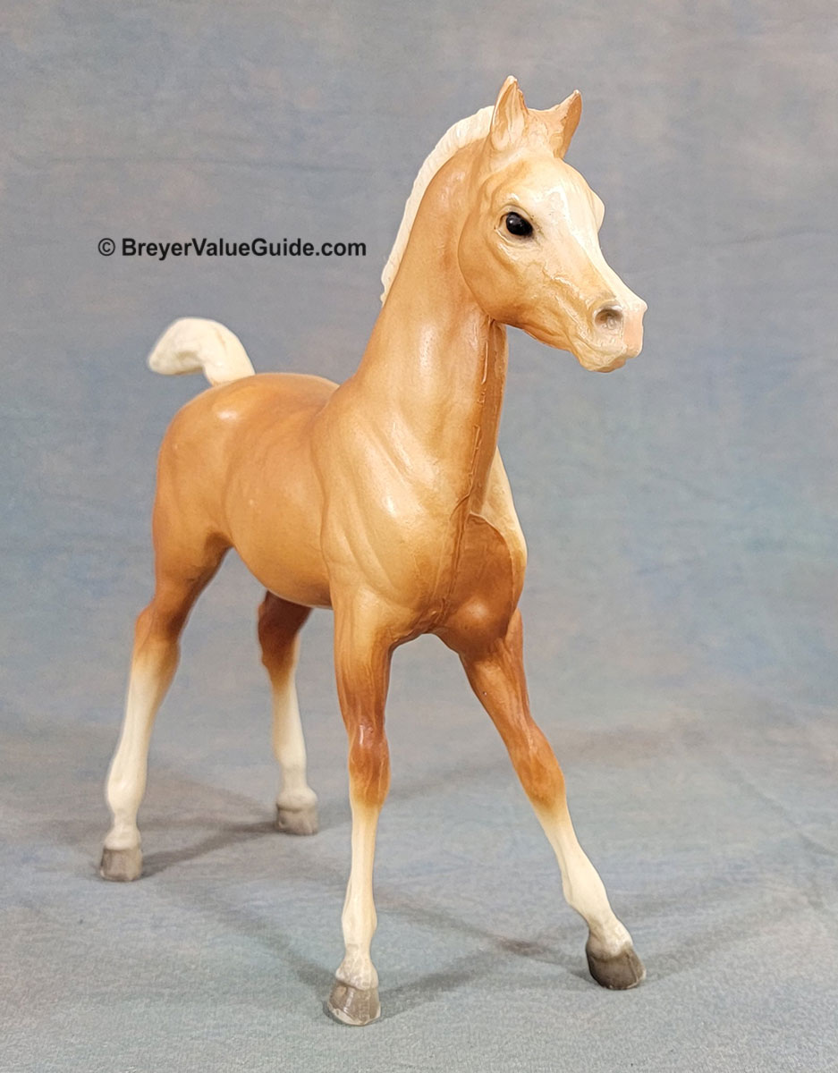 Matte palomino; bald face; pinked muzzle; 4 socks