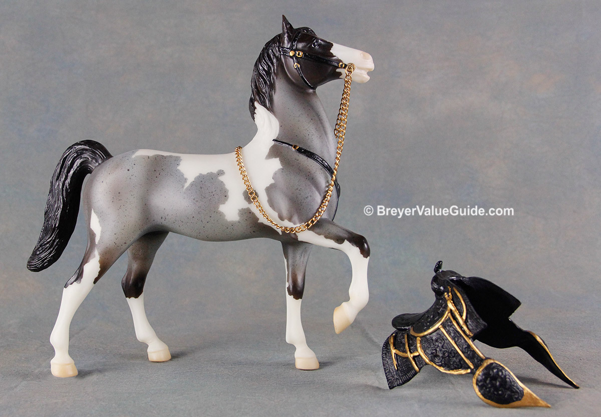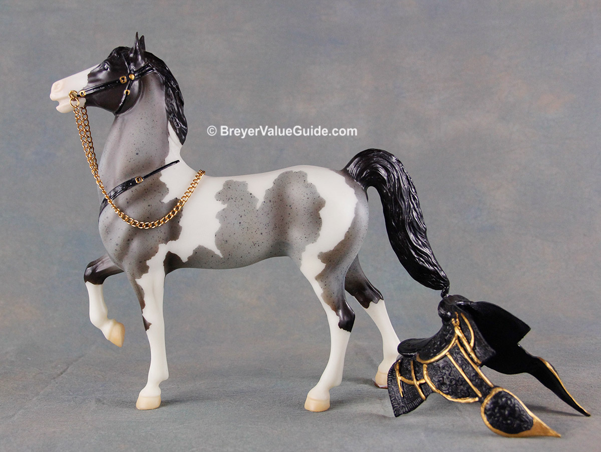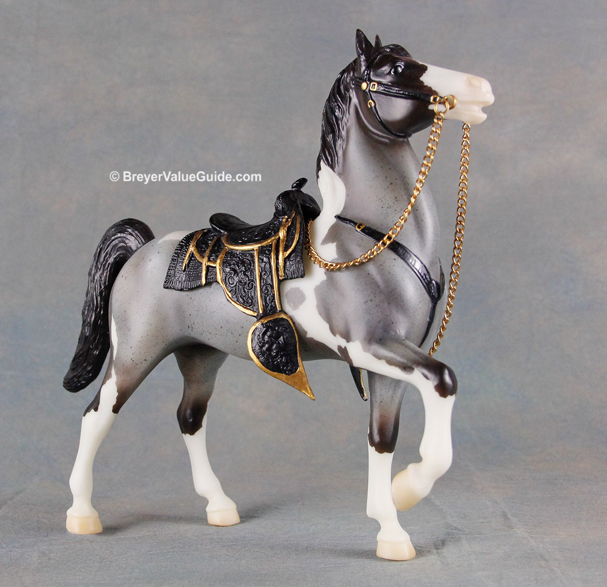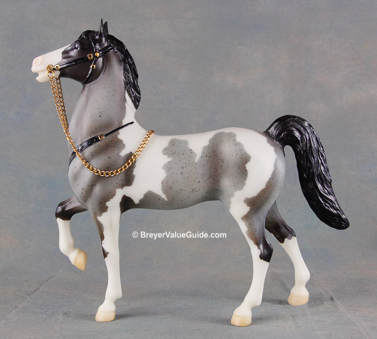 Matte blue roan pinto; apron face; black saddle; Live Show Benefit Model; 1/45