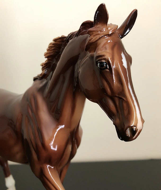 Glossy chestnut; narrow blaze; 3 socks; Chasing the Chesapeake SR; 1/200