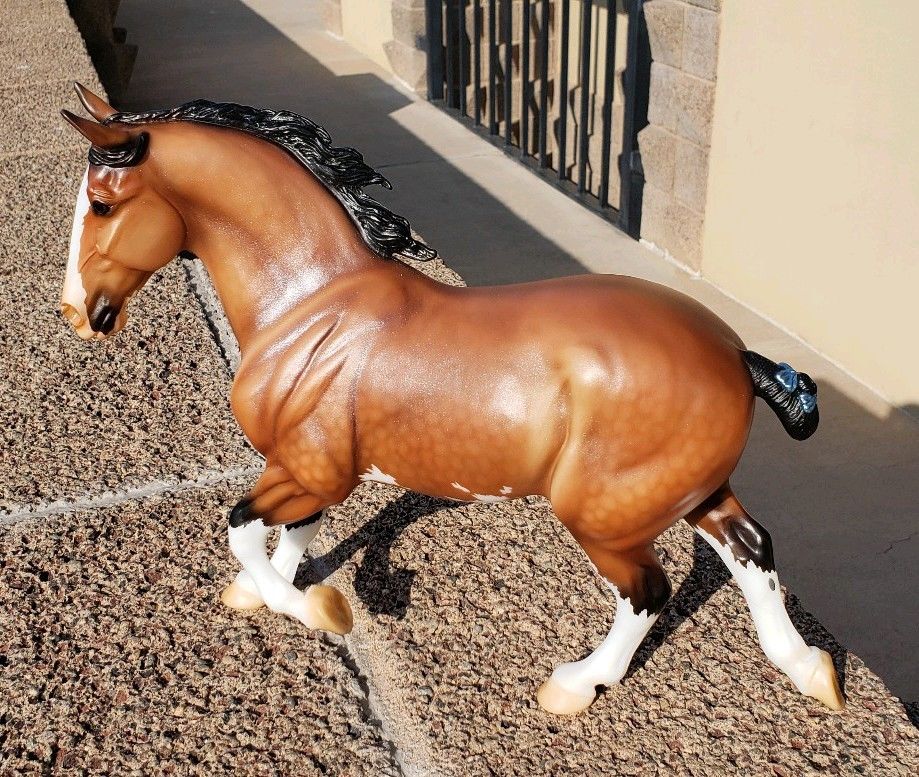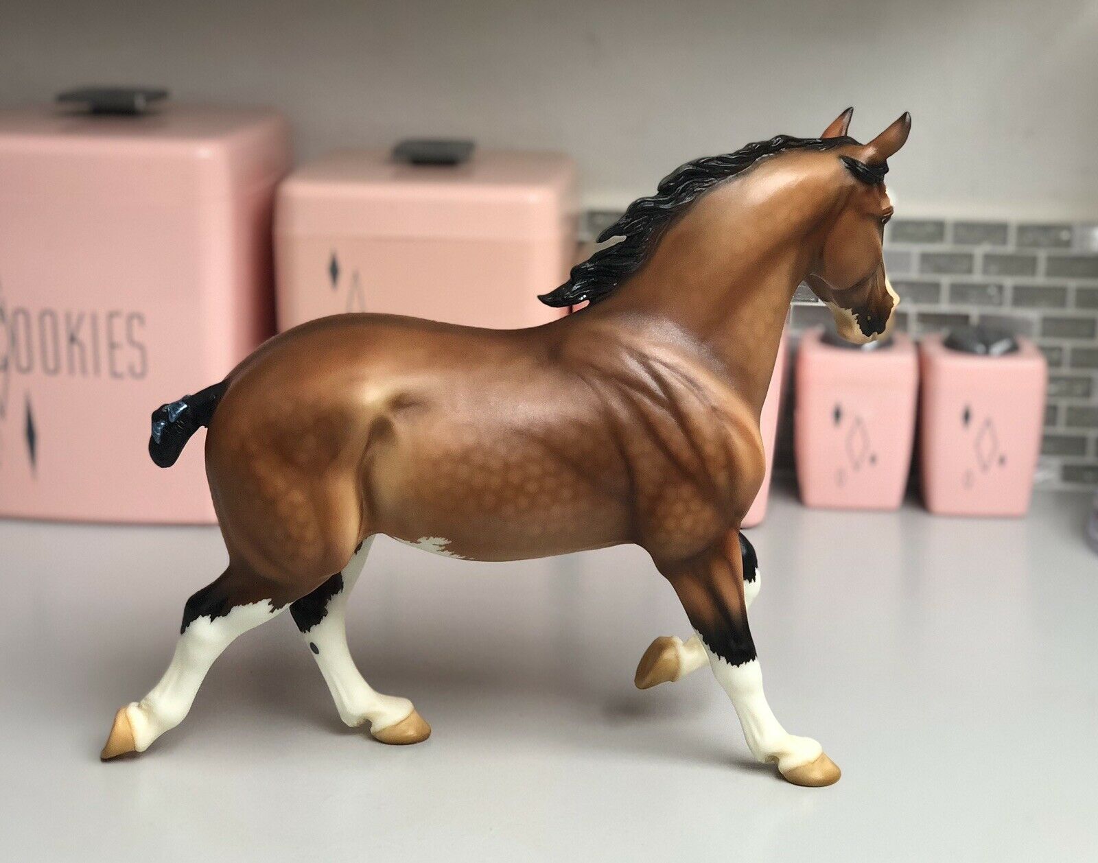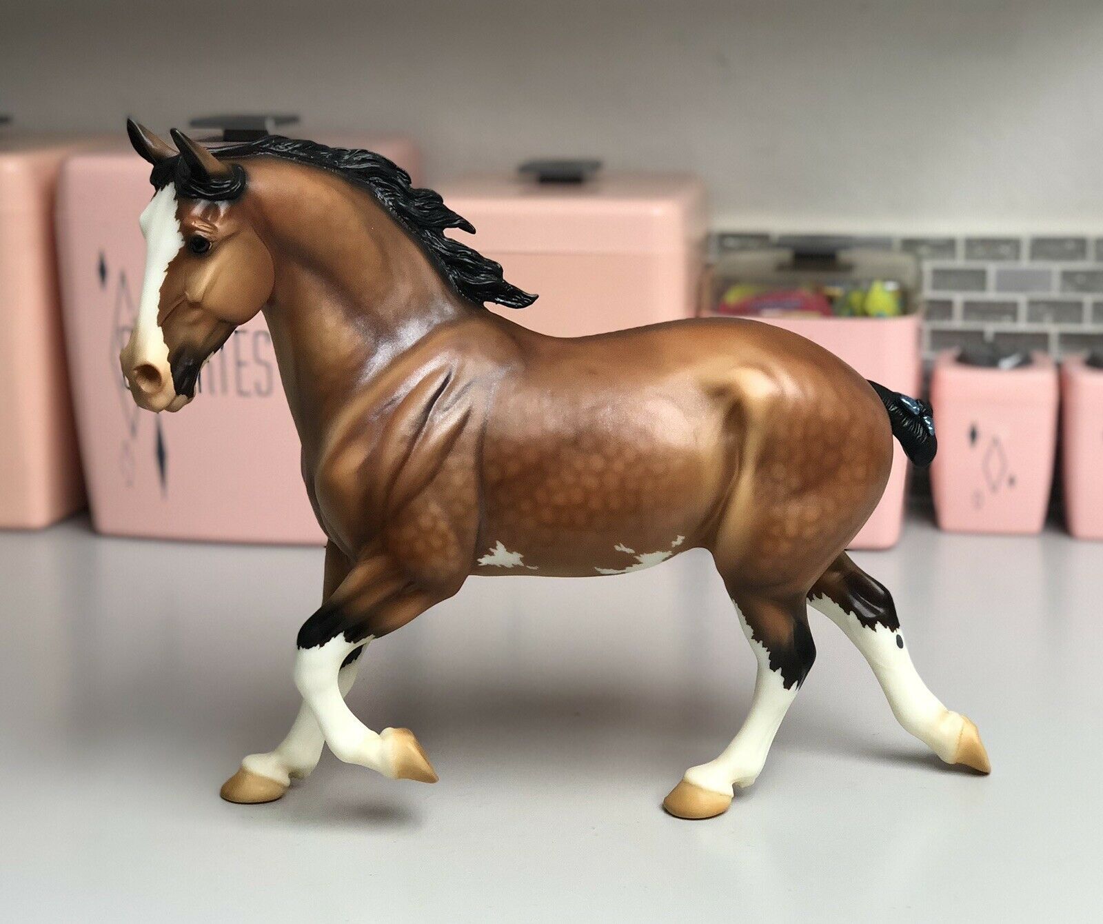 Matte bay splash pinto; dapples; stenciled wide blaze; 4 stockings; blue tail ribbons; Scottsdale Stampede SR; 1/40