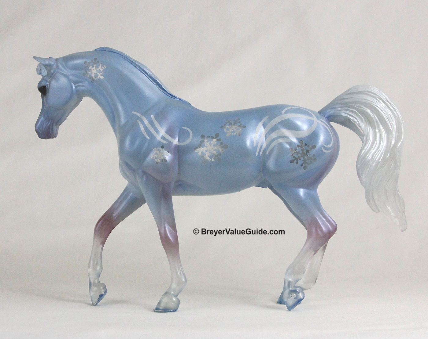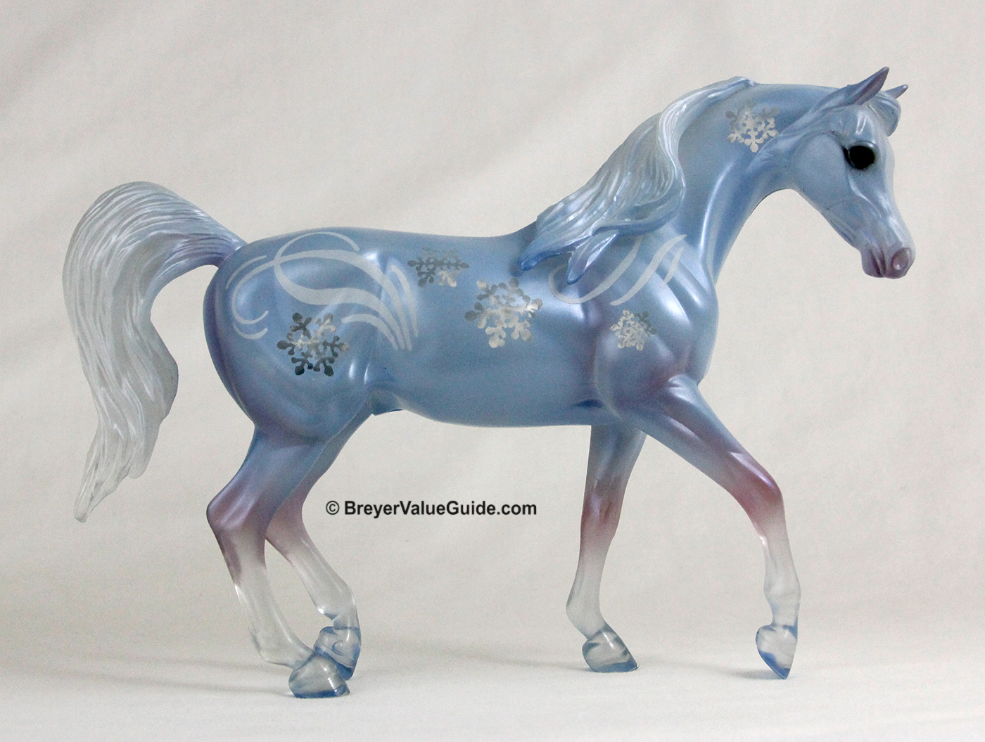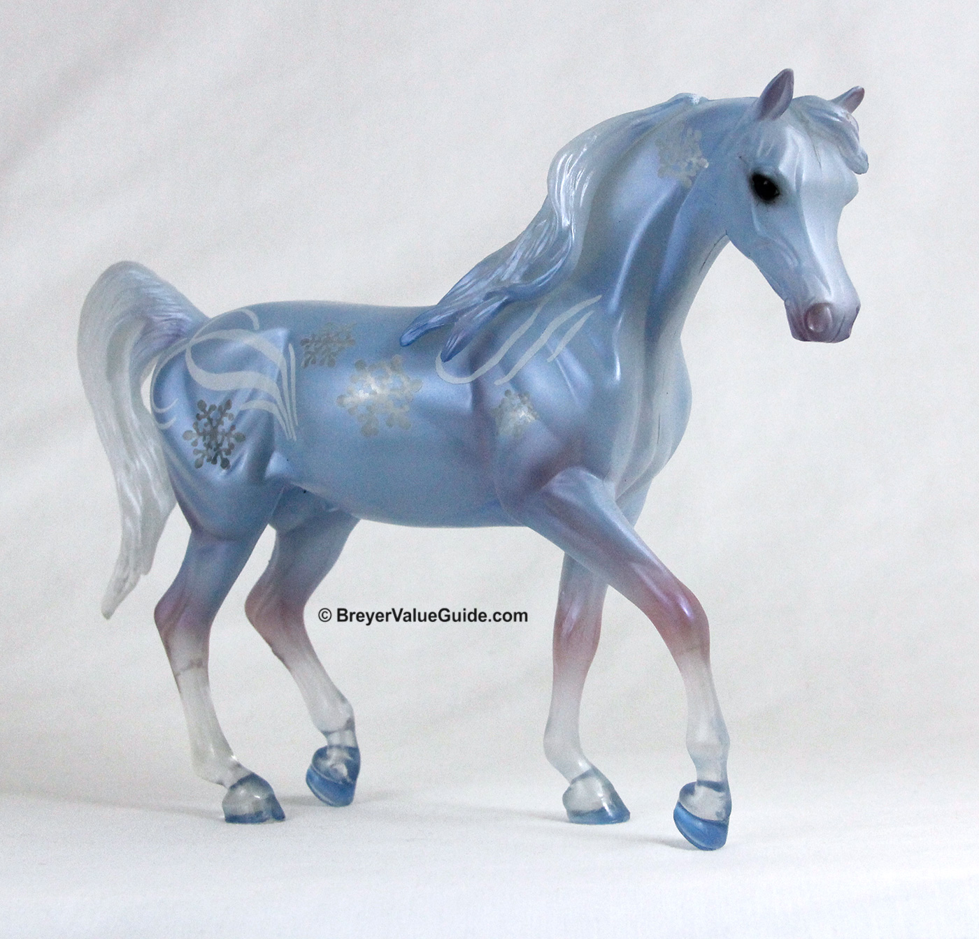 Clearwear translucent plastic with powder blue body and lavender legs, snowflake designs on body, Winter Decorator Limited Edition