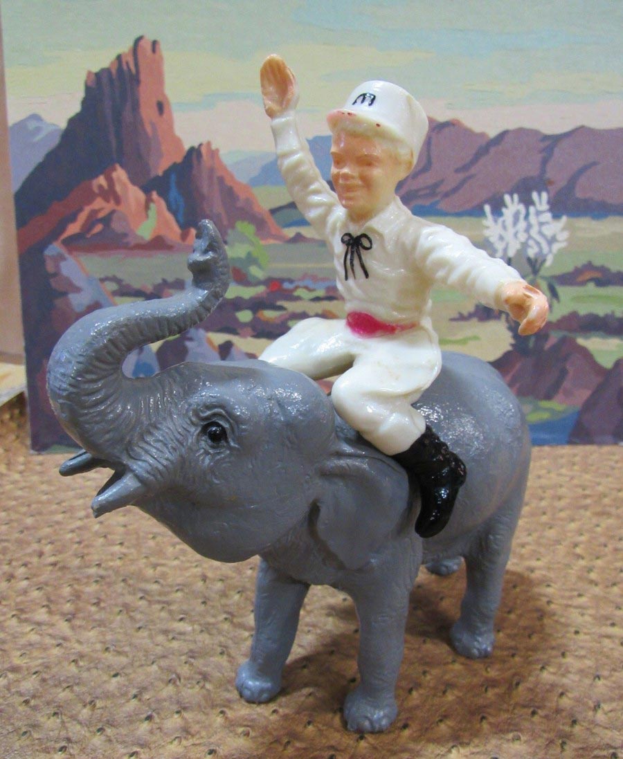 Matte or semigloss grey with grey or white tusks, or battleship grey. Same as #91. With rider and hang tag.
