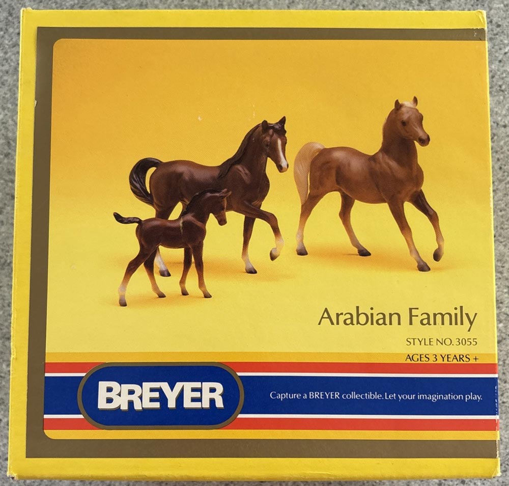 Matte sorrel; flaxen mane and tail; solid face; 4 socks; grey hooves – with Arabian Foal and Arabian Mare
