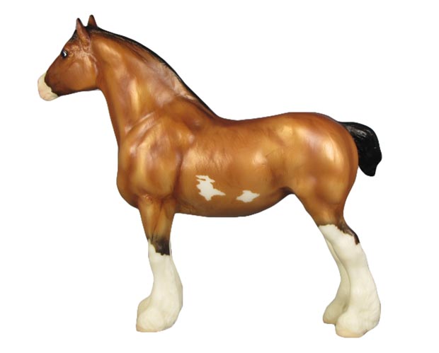 Matte light bay; minimal pinto markings; slightly metallic; 4 high whites; wide blaze over muzzle; “Warehouse Find”