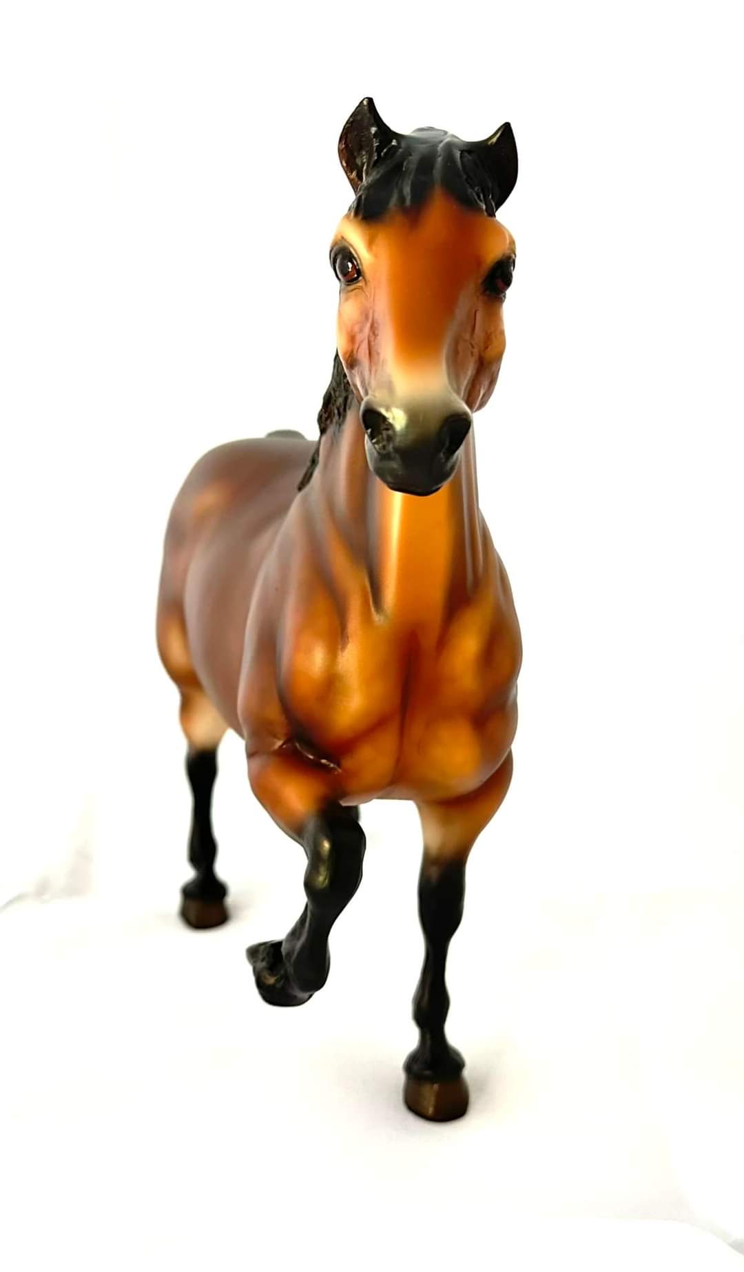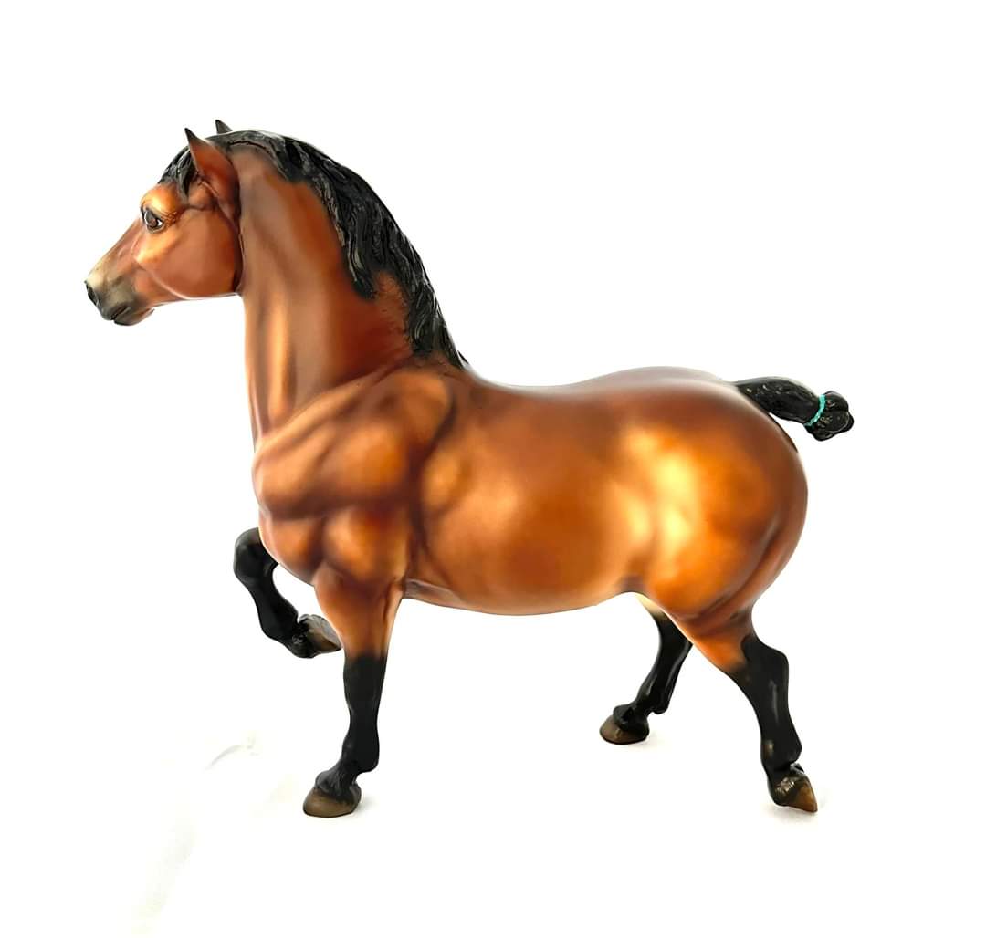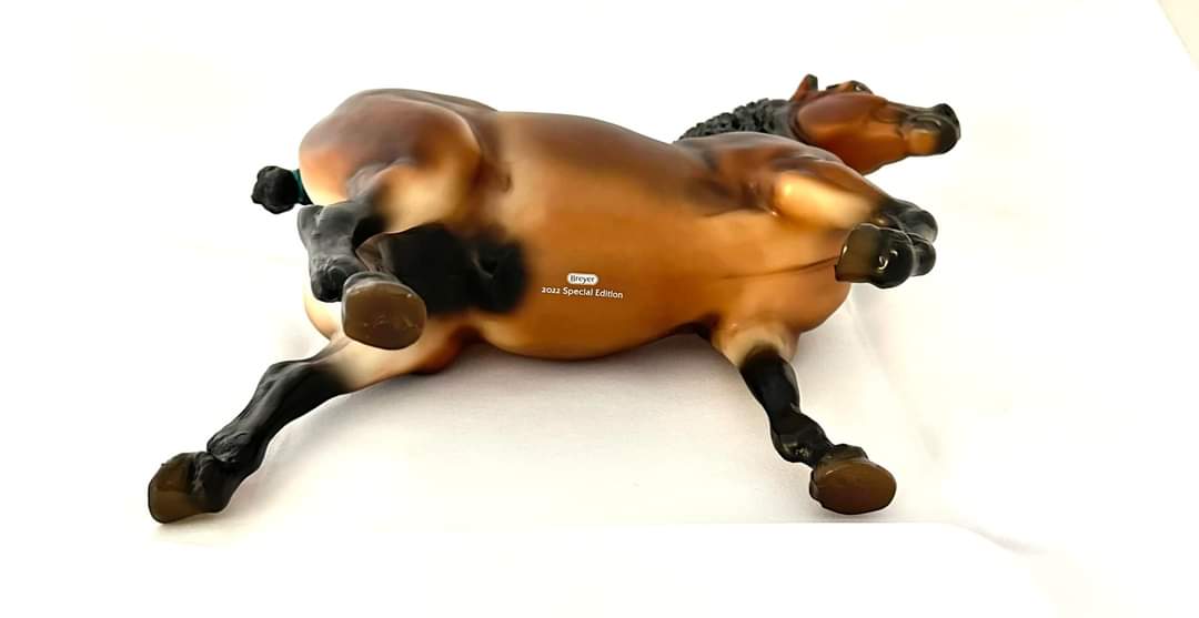 Matte mealy bay, dapples, solid face and legs, blue-green tail ribbon, Ponies and Palm Trees SR, 1/48 Issue price: $250