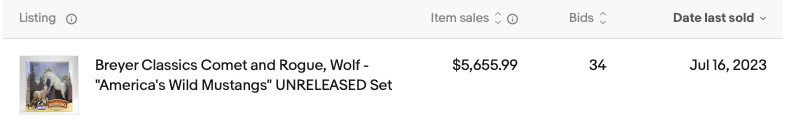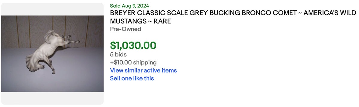 Bucking Bronco: Matte light shaded grey; Wolf: Matte reddish grey, darker tail and muzzle; Walmart SR, America’s Wild Mustangs series. Valued as a set. Based on 2023 sold auction price.