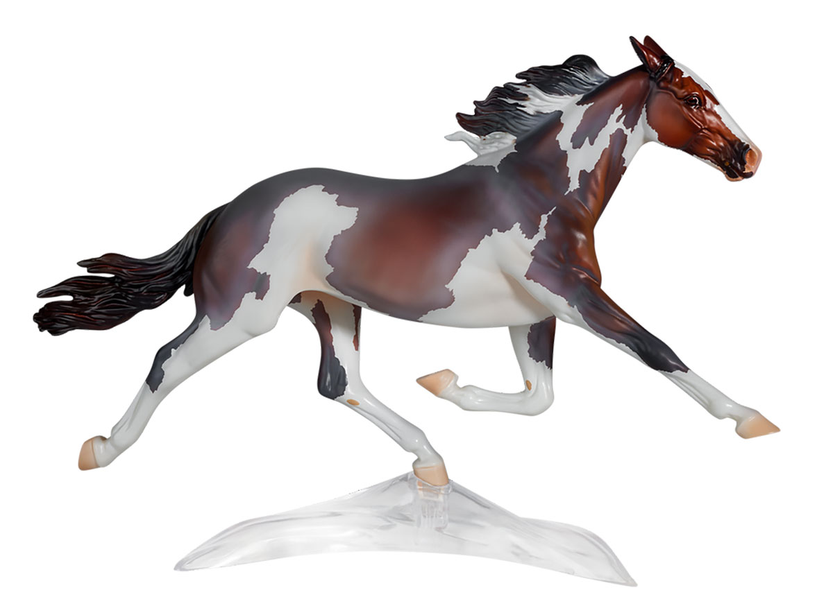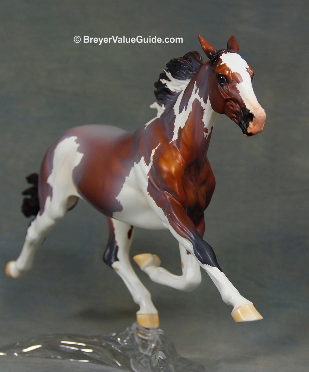 Matte bay sabino pinto, mapped markings, detailed eyes, wide blaze, 4 stockings, white chalky base coat, Premier Club SR