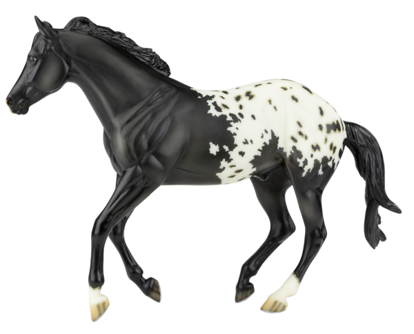 Matte shaded black appaloosa; 2 socks with striped hooves; BreyerFest Prize SR