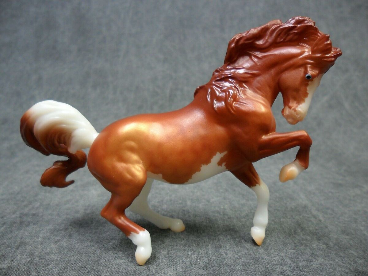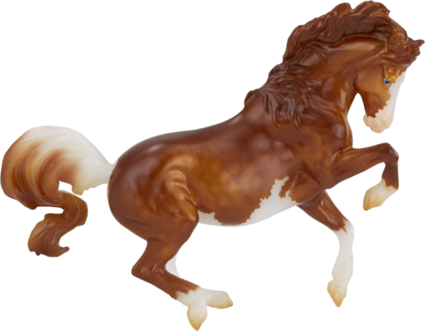 Matte shaded red chestnut pinto, dapples, wide blaze, 2 stockings, 2 socks, Stablemates Club gamblers choice SR