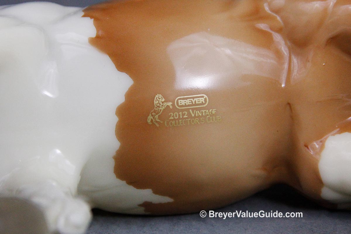 Glossy palomino pinto; bald face; white legs; gold bobs; Blue Ribbon sticker; Vintage Club SR; 1/500