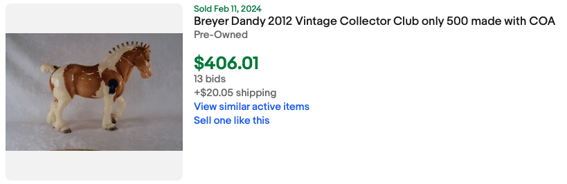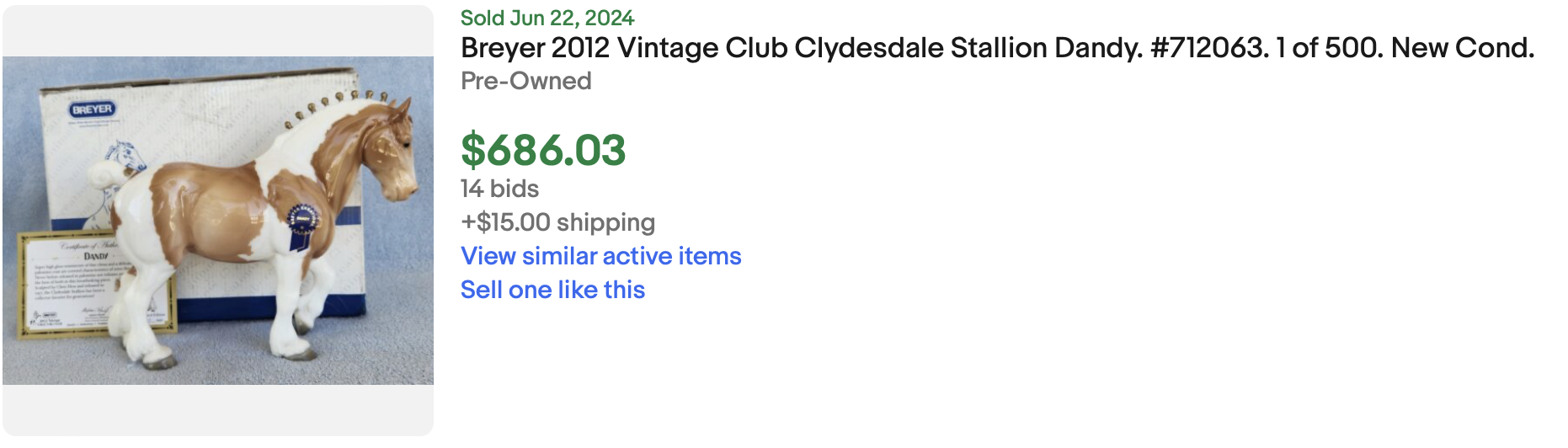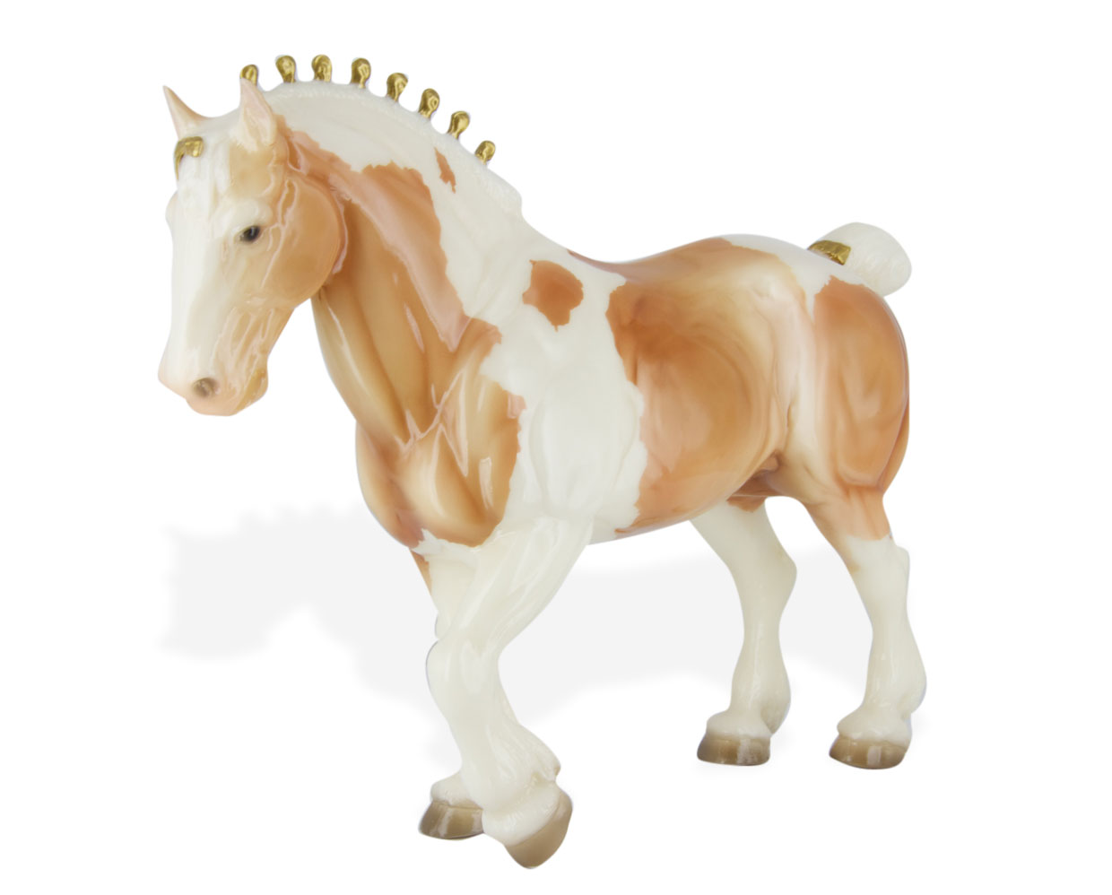 Glossy palomino pinto; bald face; white legs; gold bobs; Blue Ribbon sticker; Vintage Club SR; 1/500