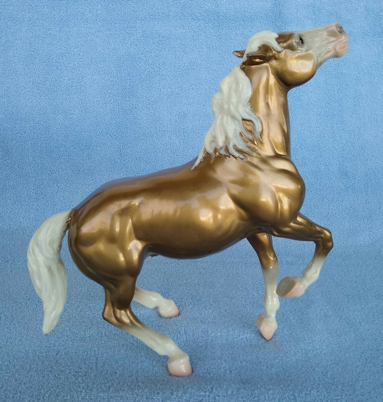 Glossy Gold Charm, bald face, pinked muzzle, white mane and tail, 4 socks Value based on 2022 sold auction price.