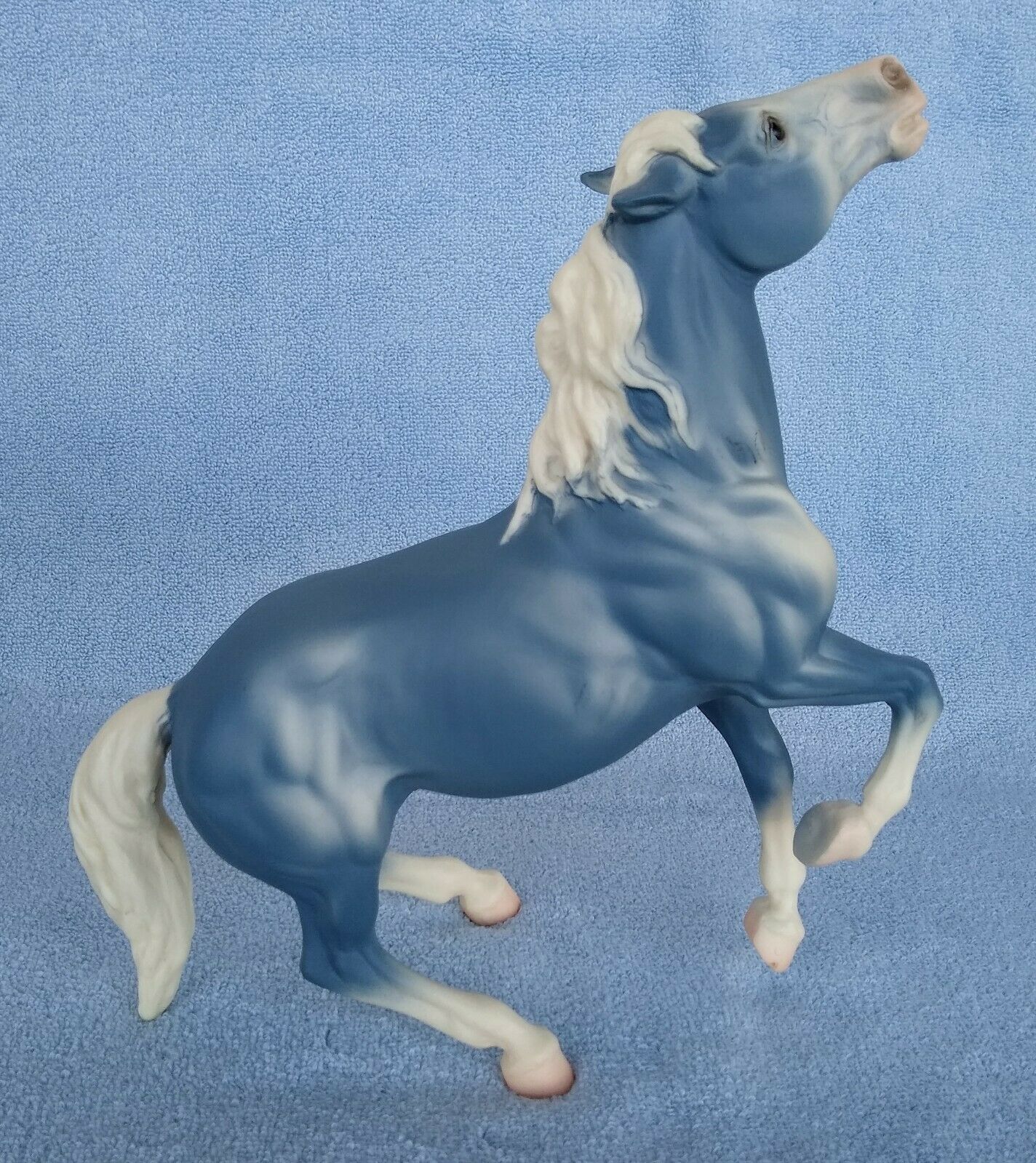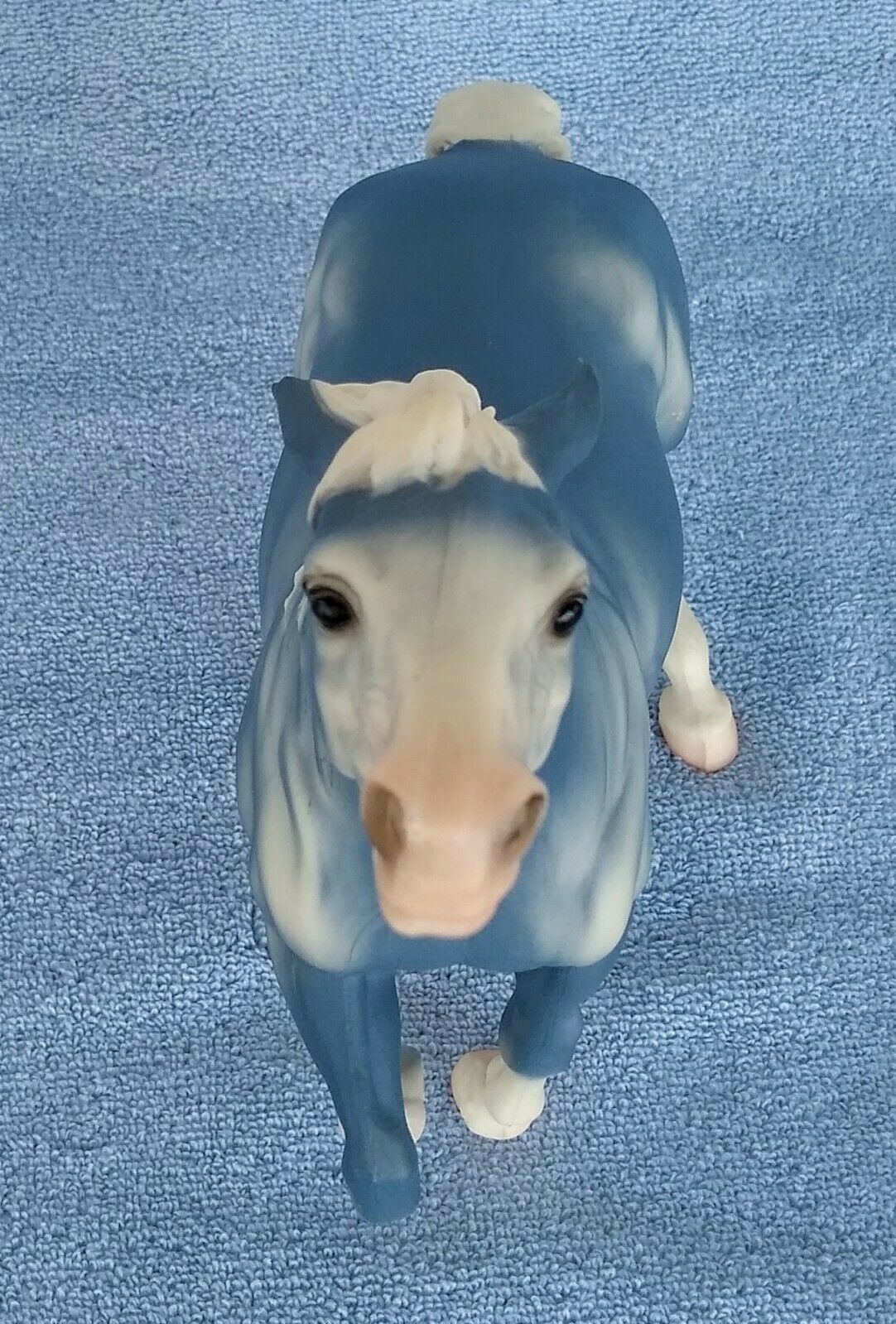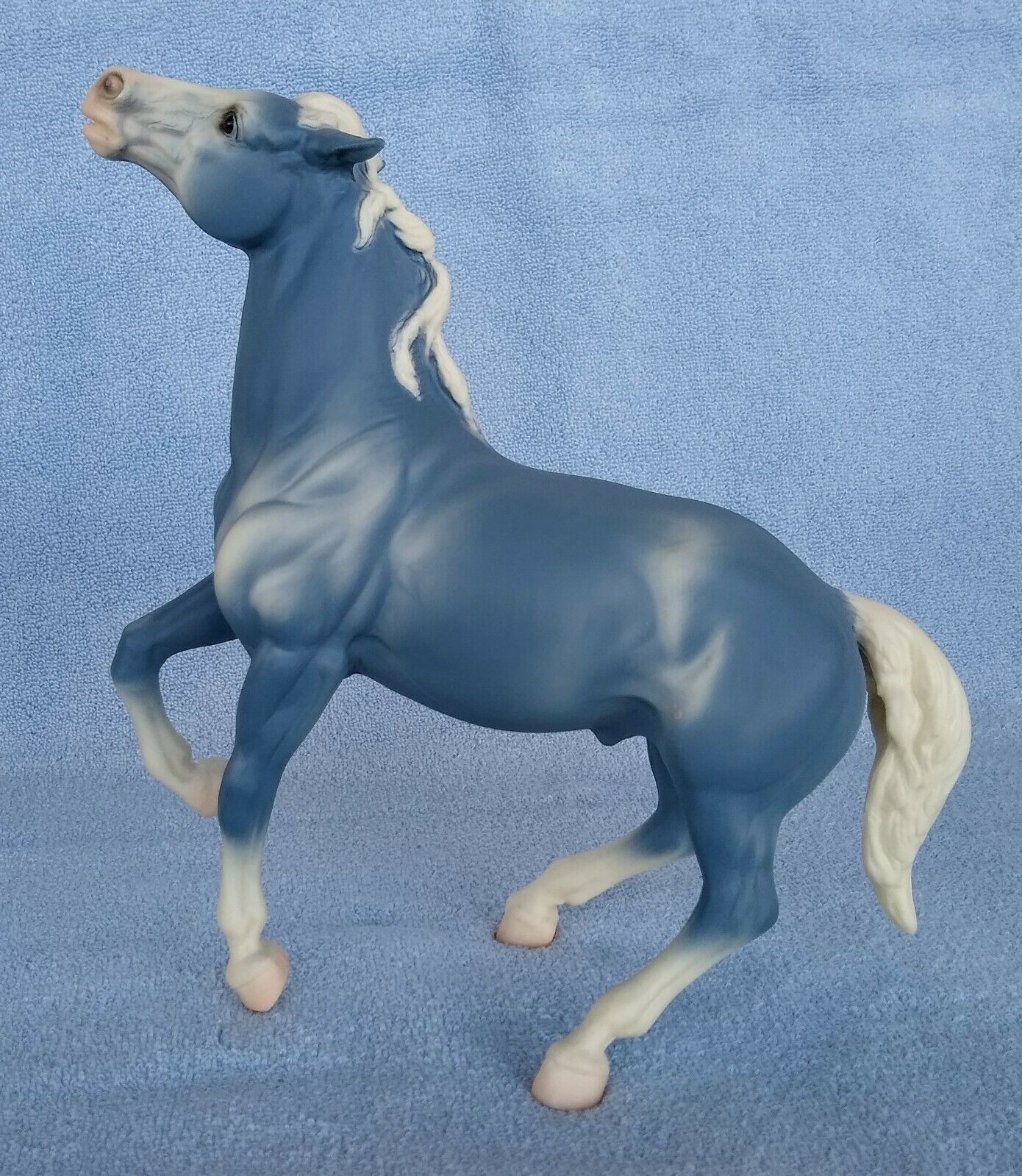 Matte wedgewood blue, bald face, pink muzzle, white mane and tail, 4 socks Value based on 2022 sold auction price.