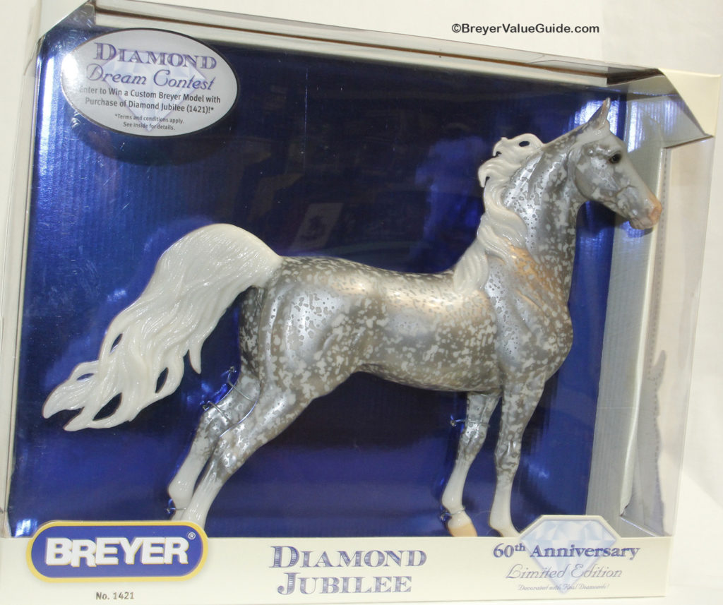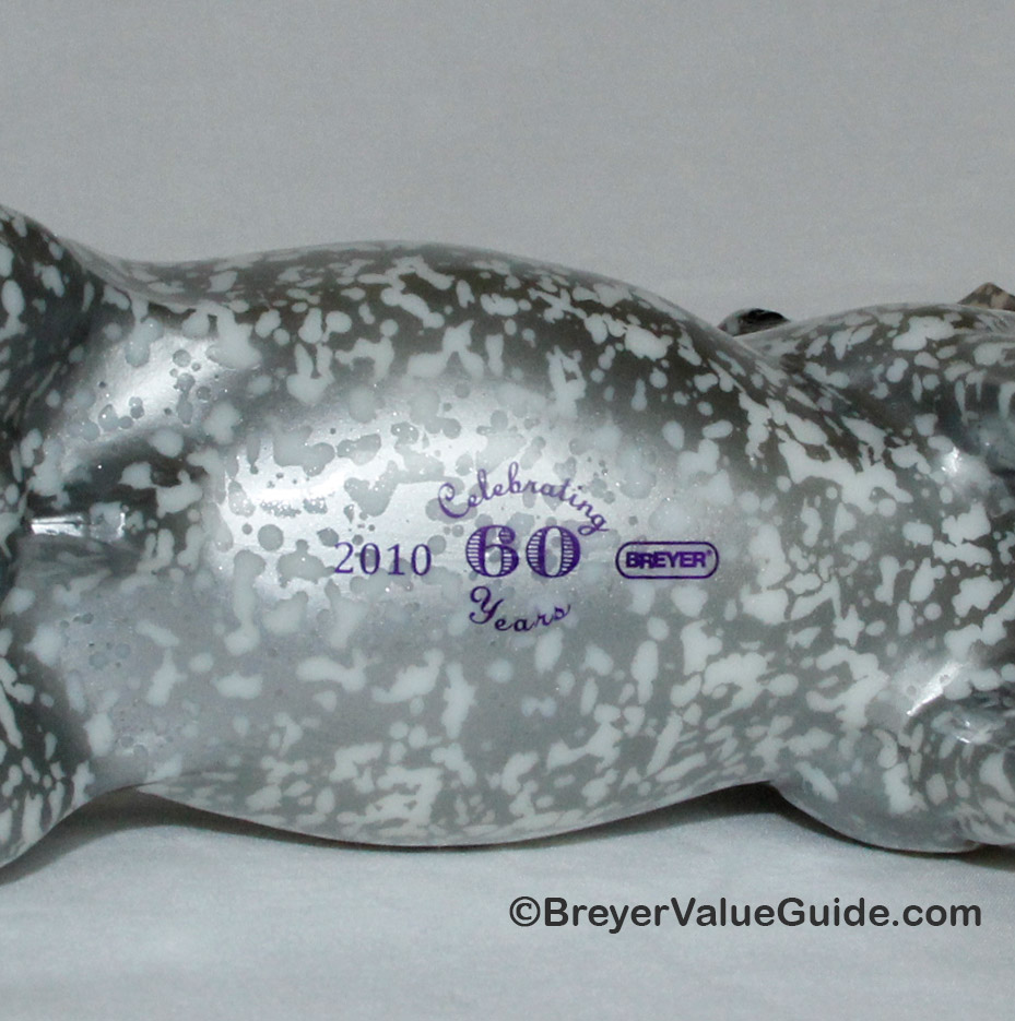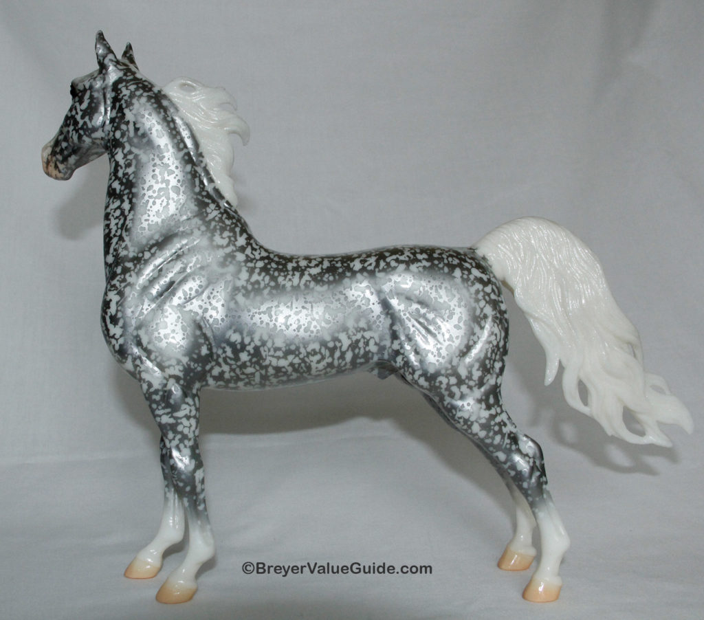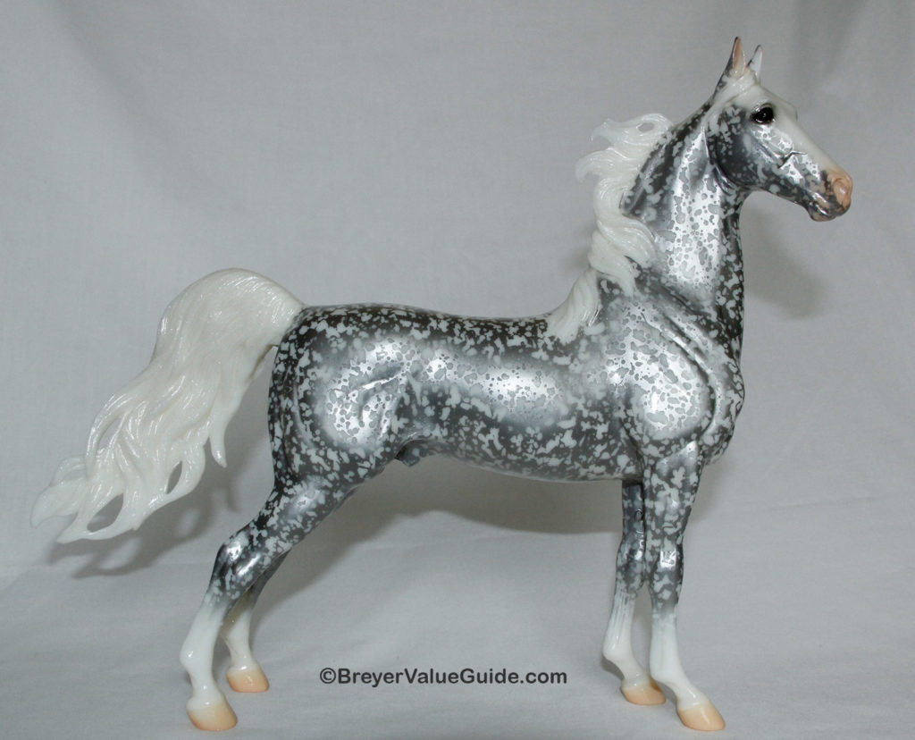 Glossy silver filigree; white mane and tail; bald face; 4 socks; pinked muzzle and ears; 60th Anniversary SR; 1/2010