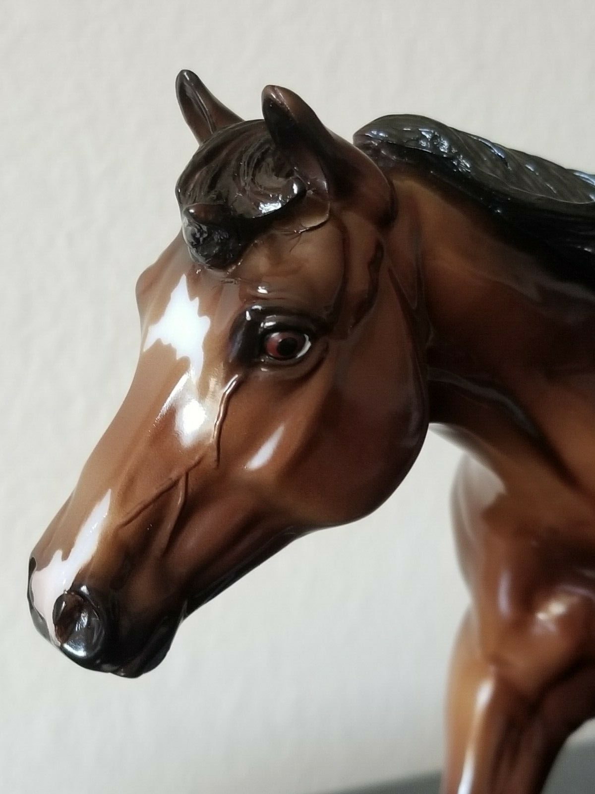 Glossy bay, dapples, star and snip, 3 socks, loose mane and tail version, stamped “BreyerFest 2019 30th Anniversary”, BreyerFest SR, 1/885
