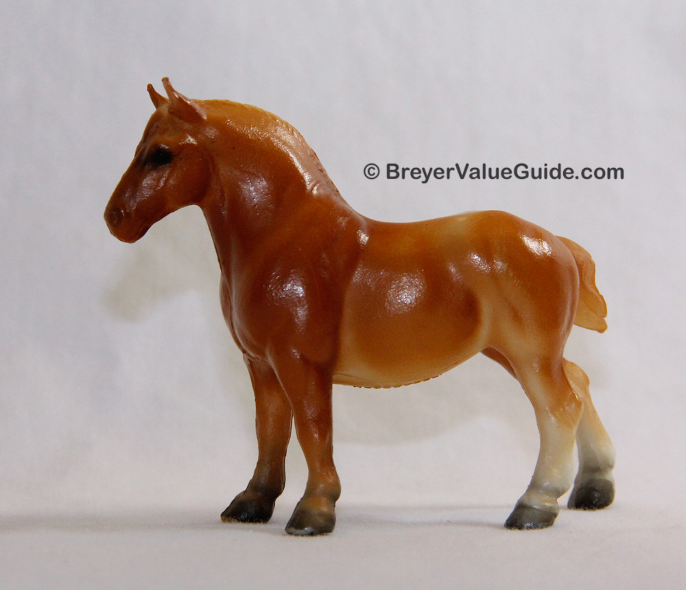 Matte/ semigloss sorrel to chestnut; various socks or none; grey hooves