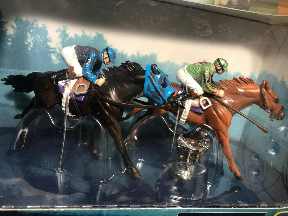 Matte dark bay/black; no markings; grey hooves; with tack and jockey