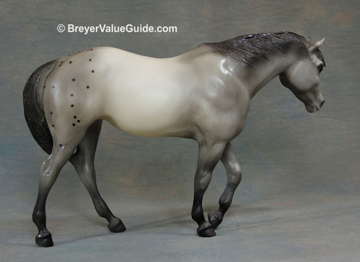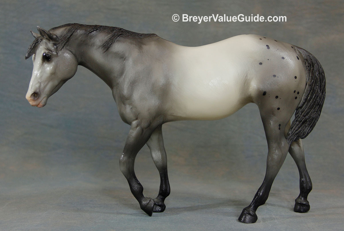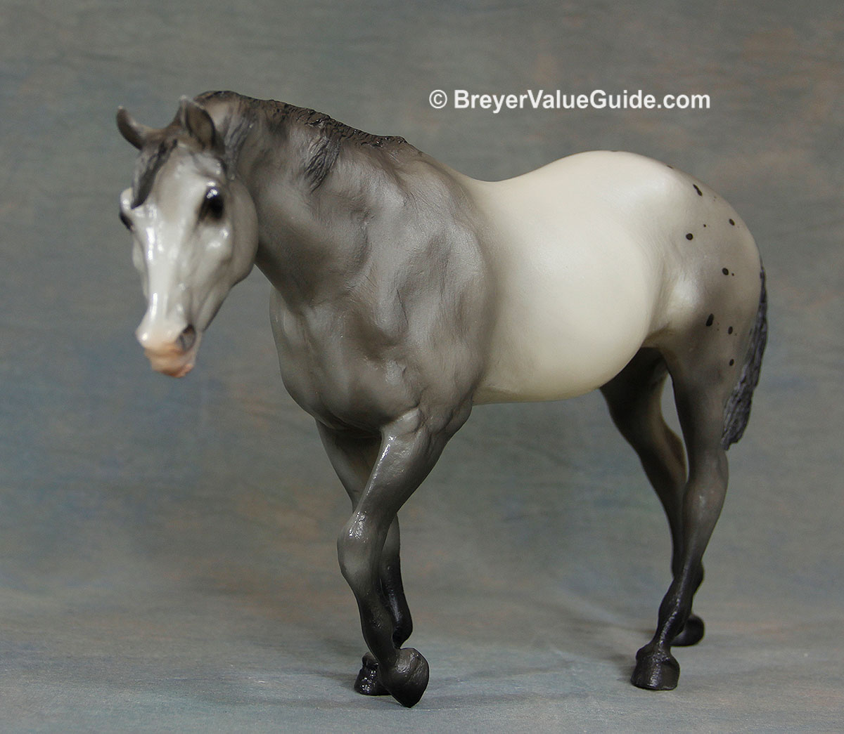Semigloss grey appaloosa; black spatter spots; light face, pink muzzle, glossy versions known, Sears SR