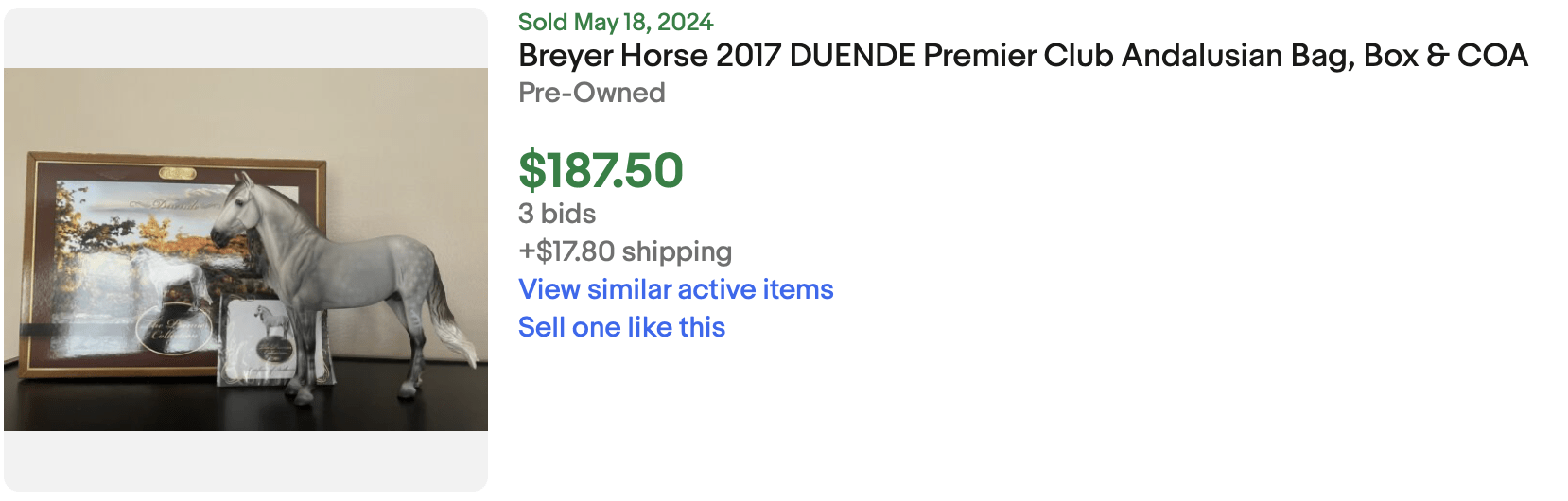Matte star dappled grey; light chestnut shaded mane and tail; dark grey shaded and striped legs; snip; Premier Club SR