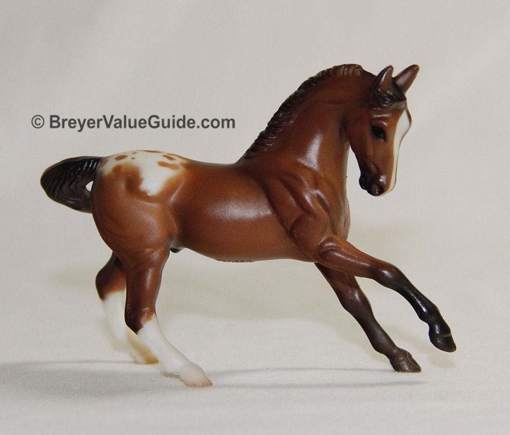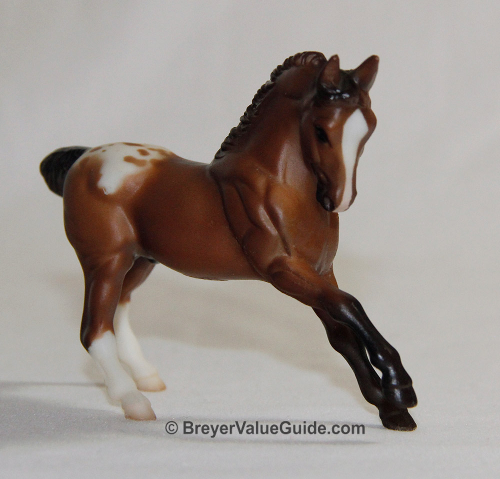 Matte dun appaloosa; dorsal stripe; brown points; stenciled pattern; blaze; 2 hind socks