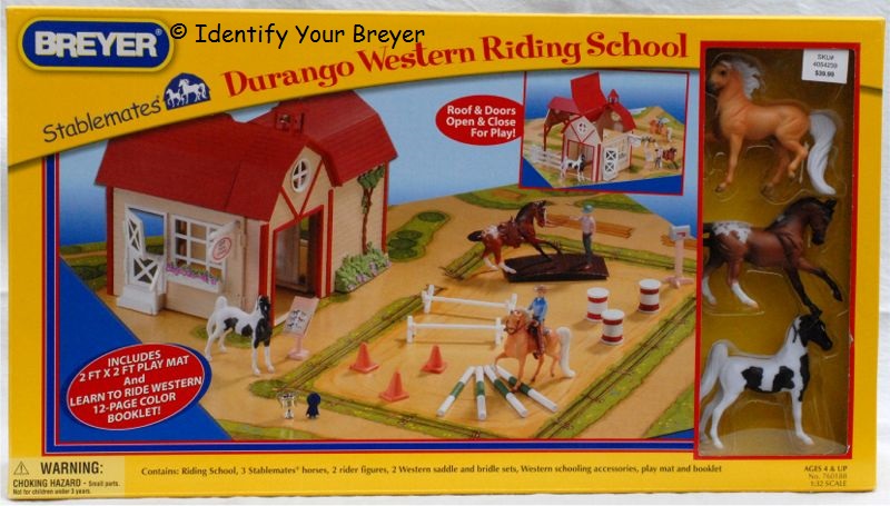 Matte black pinto; star; white legs; white mane and tail; purple and gold ribbons; Tractor Supply SR – with Appaloosa and Morgan Same as #5904