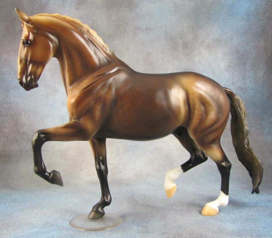 Matte dark dappled chestnut; elongated star; 2 hind socks; Passage to the Pacific SR; 1/100