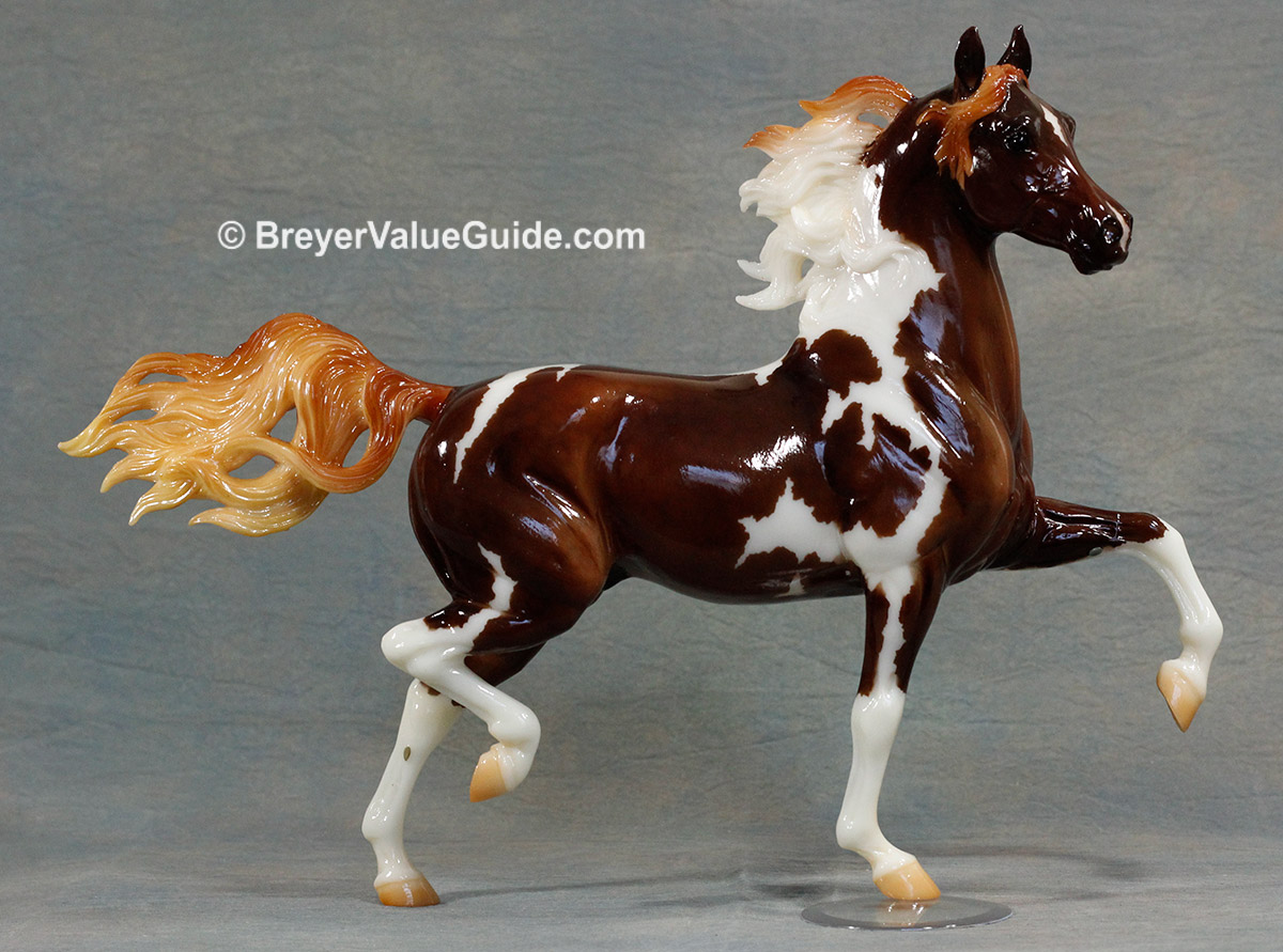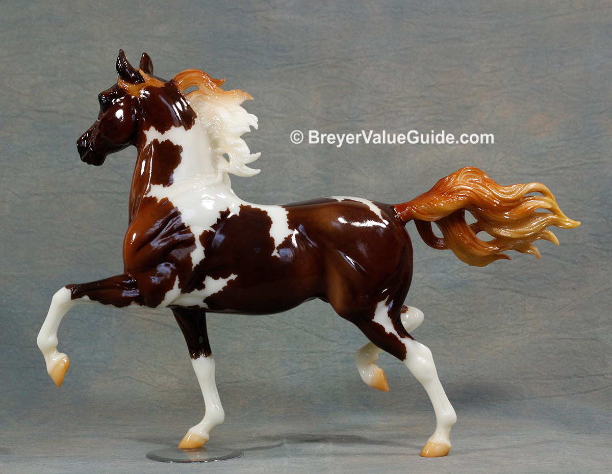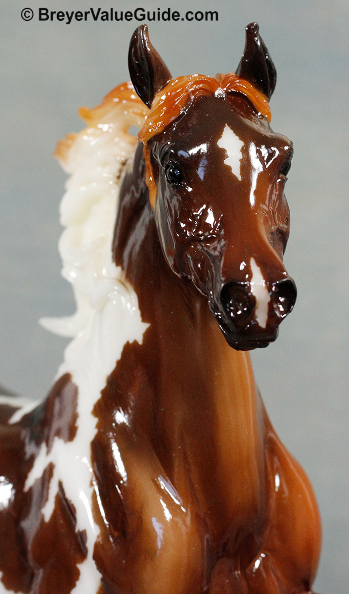 Glossy red chestnut pinto; star; snip; 4 stockings; Collector Club SR