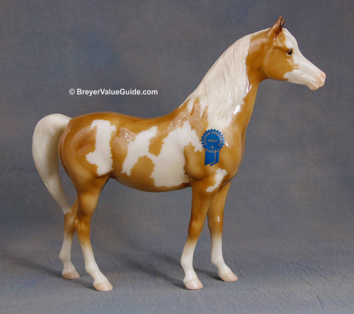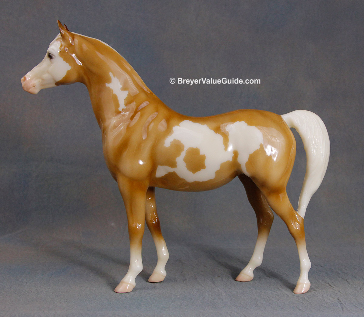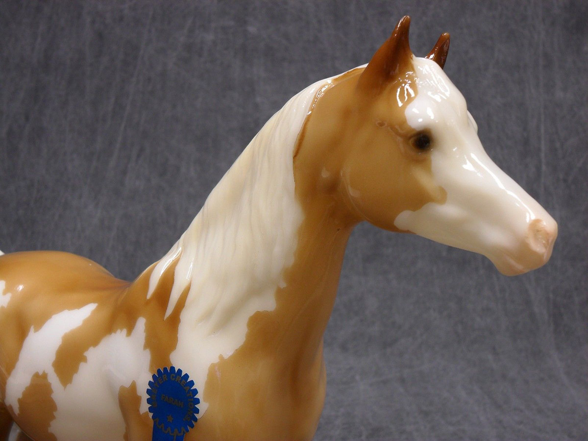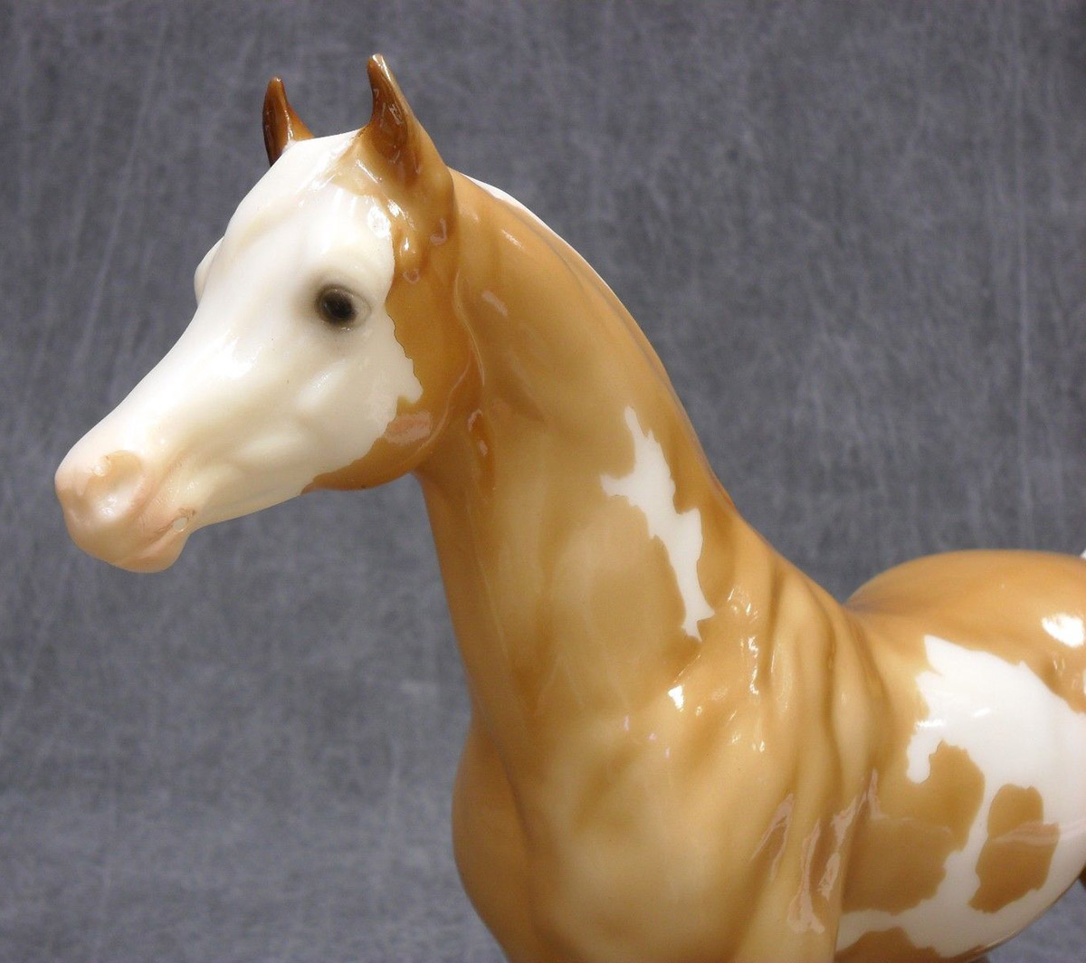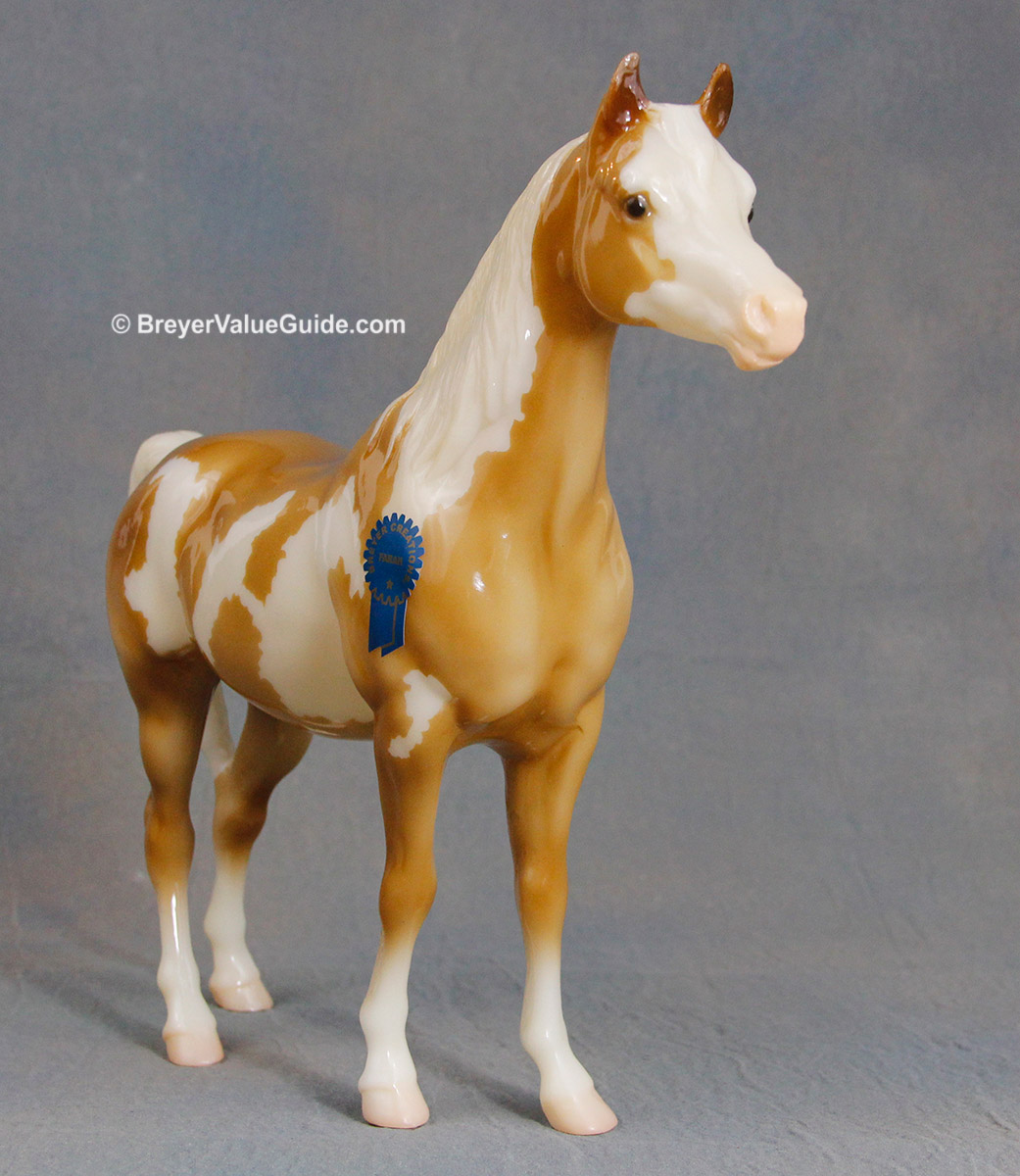 Glossy palomino pinto; masked bald face; white mane and tail; 4 socks; blue ribbon sticker; Vintage Club SR; 1/500