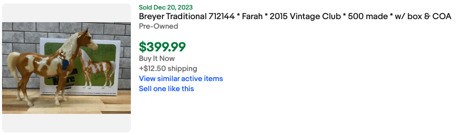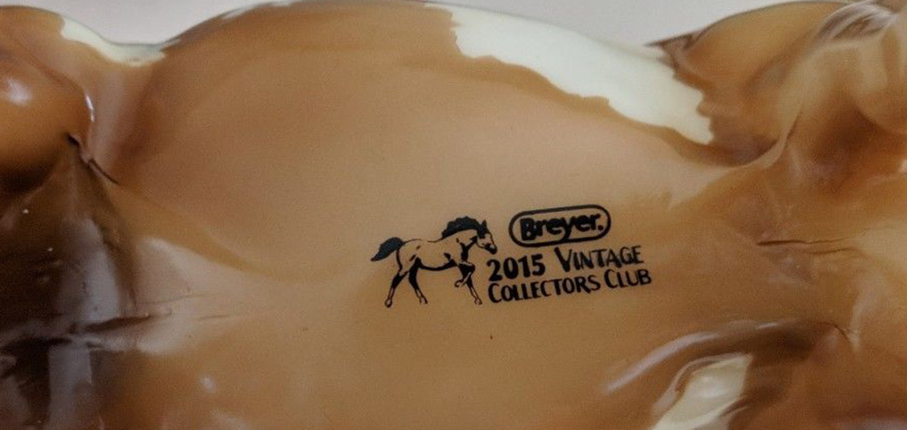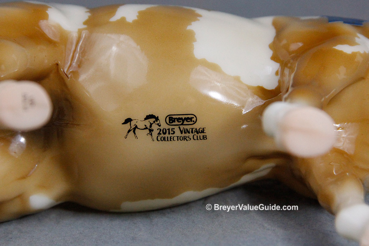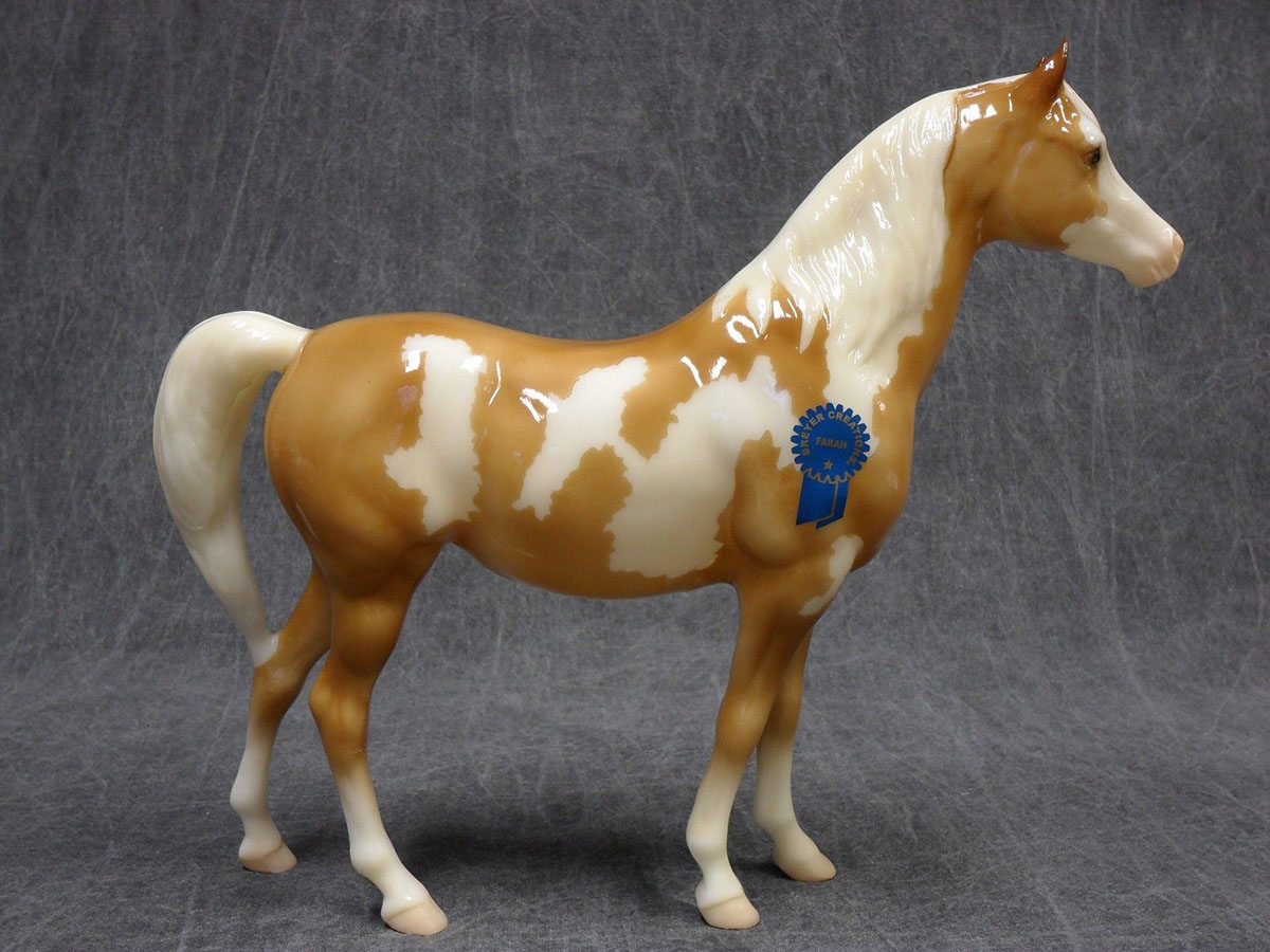 Glossy palomino pinto; masked bald face; white mane and tail; 4 socks; blue ribbon sticker; Vintage Club SR; 1/500