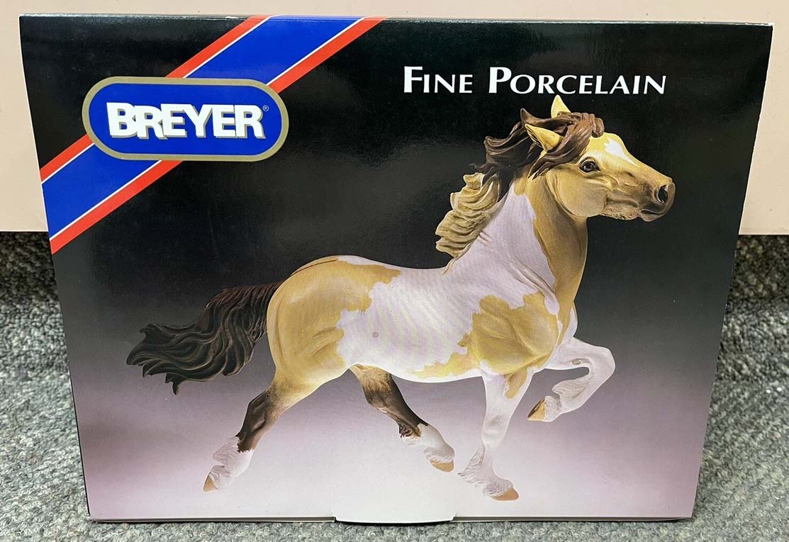 Porcelain; matte buckskin pinto; star; white front legs, low hind socks; with COA