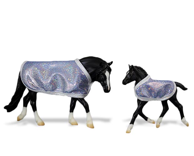 Mare: Matte black; wide blaze; 4 socks; includes blanket