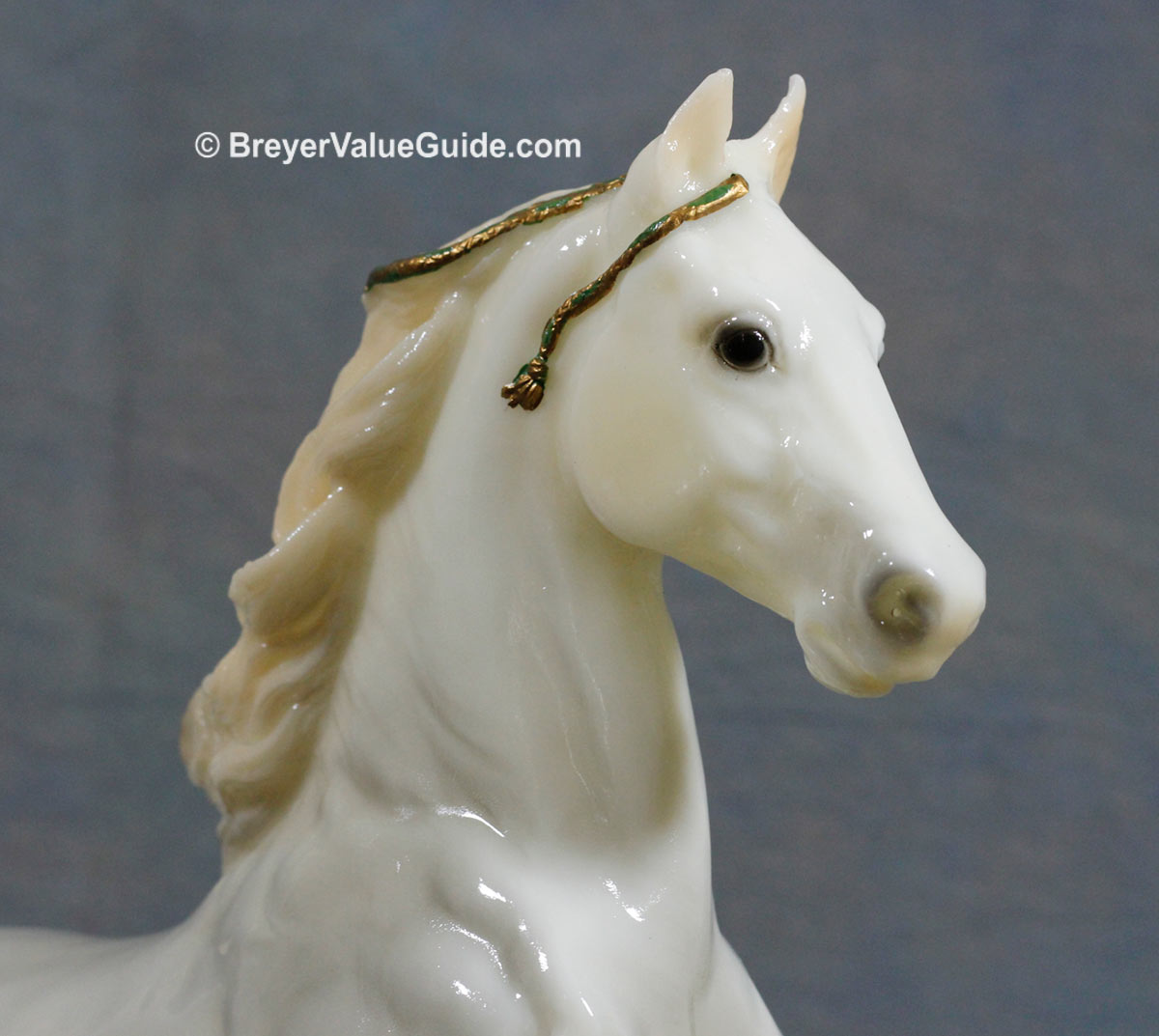 Glossy alabaster/champagne; light grey and tan shading; green and gold ribbons; JAH SR; 1/3000